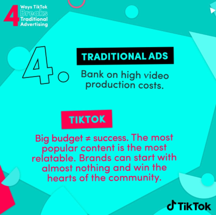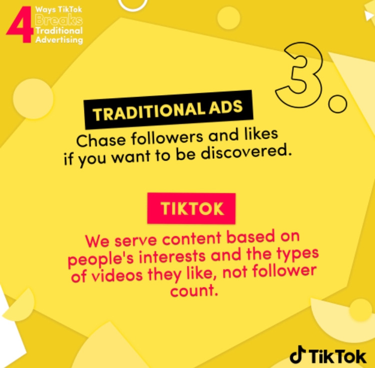 관심 있는 분들은 4 ways TikTok Breaks Traditional Advertising을 참고하시길.