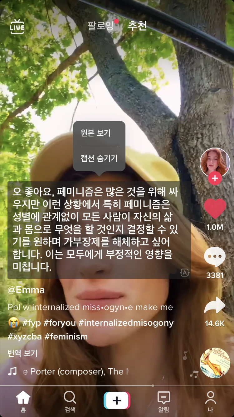 동영상 캡션 기능으로 크리에이터가 자막을 입력해