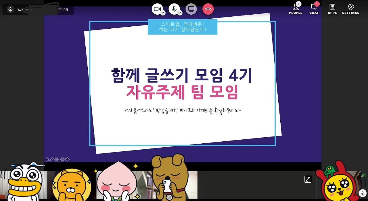 일주일에 한 번 글을 쓰고 카톡 단체방에 공유하는 방식의 모임입니다.