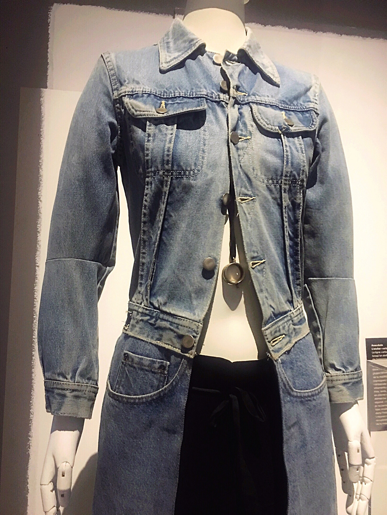 마틴 마르지엘라의 1991년 여름 패션쇼는 재활용을 통해 3)리프로덕트를 제대로 선보인 해입니다. 리프로덕트 한 드레스를 선보인 거죠. 예전 드레스는 코르셋에 의해 압착된 몸을 위해 만들어졌기 때문에 너무 작습니다. 그는 중앙 솔기를 따라 자르고 4)튜닉으로 변형시킴으로써 50 년대의 볼 드레스에 편안함을 더해 두 번째 생명을 불어넣습니다. 또한 청자킷과 찢어진 청바지를 한 조립으로 해서 만든 최초의 옷을 선보이기도 합니다.