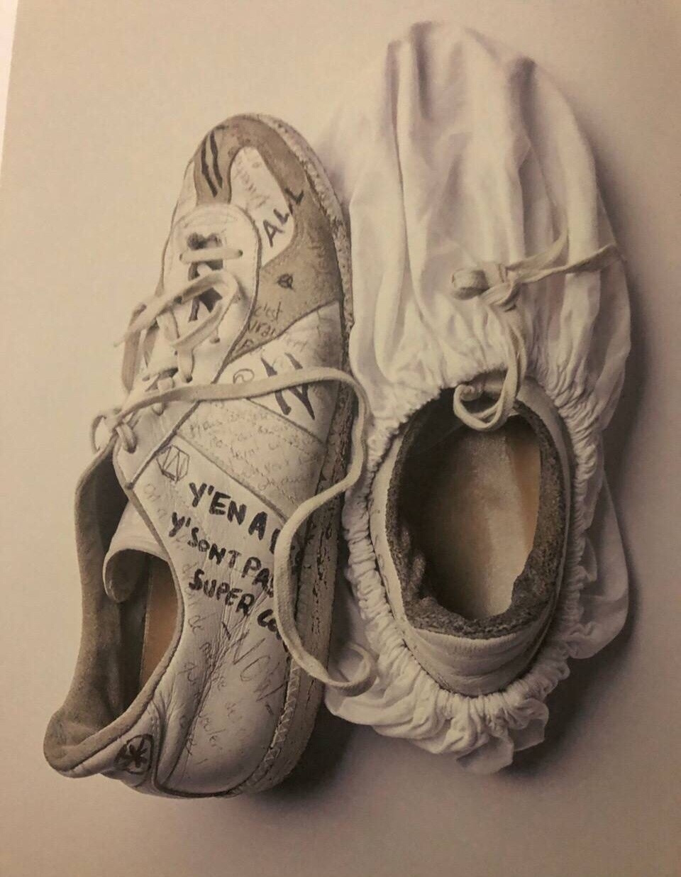 88년 메종 마틴 마르지엘라의 첫 패션쇼는 70년대 느낌이 나는 '카페 드 라 가르'라는 극장에서 열렸습니다. 마틴 마르지엘라는 첫 패션쇼를 낯선 곳에서 하는 게 맞는지 망설였지만 극장 주인은 제라르 드파르디유, 미우미우가 이곳에서 시작을 했다며 잘 해내면 유명해질 거라고 권유를 했고 고심 끝에 패션쇼를 극장에서 열기로 결정합니다. 혹자는 별거 아니라고 생각할 수 있습니다. 요즘엔 다양한 곳에서 패션쇼를 열기도 하니깐요. 하지만 당시엔 루브르 박물관 사각 안뜰이나 루브르 5블록 반경 내 런웨이가 아닌 곳에서 패션쇼를 연다는 것은 상상하기 어려운 일이었죠. 또한, 마틴 마르지엘라는 사람들의 이목을 끌기 위해 모델이 백스테이지를 떠나기 전 빨간 페인트를 밝고 나가 모델 워킹 발자국을 남기기도 했습니다. 이를 활용해 그 다음 시즌엔 발자국을 남긴 런웨이를 활용하여 옷으로 만들어 냈죠.