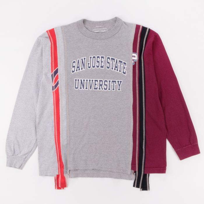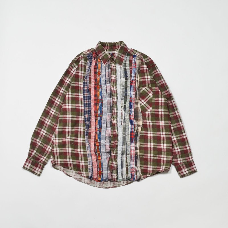리빌드 바이 니들스는 예전의 것들을 재건축해 세상에 단 하나뿐인 아이템을 만드는 니들스 브랜드의 세컨드 브랜드입니다. 위 티셔츠는 빈티지 제품을 하나하나 잘라서 붙였기 때문에 디자인당 하나의 사이즈만 있습니다. 또한, 같은 S 사이즈라도 상세 치수가 다릅니다. 빈티지 제품을 이어 붙였다는 점에서 마틴 마르지엘라의 옷과 사뭇 비슷하네요. 같은 방식으로 셔츠도 있지만 위에 보이는 셔츠는 패치워크로 제작했기 때문에 비슷해 보여도 다른 기법을 사용한 옷이죠.