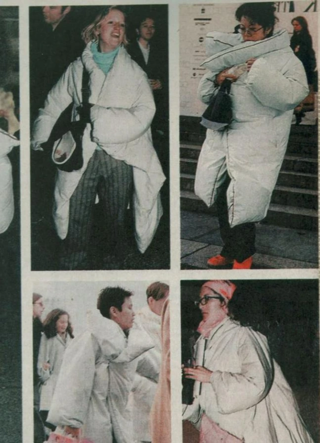 일본 보그 편집장 안나 델로 루소(Anna Dello Russo)는 "패션은 결코 편안하지 않습니다. 당신이 편안하다고 느끼면 결코 외모를 얻지 못할 것입니다!”라고 말한 적 있습니다. 과연 그럴까요? 마틴 마르지엘라의 이불 코트는 패션쇼와 아늑함이 동반자가 될 수 있음을 보여줬습니다. 특유의 축 늘어진 실루엣은 많은 푸퍼 자켓에 많은 영향을 주었습니다. 베트멍과 발렌시아가의 푸퍼 자켓은 짧지만 이불을 걸친 헝클어진 실루엣을 하고 있습니다. 빅터 앤 롤프는 아예 침실룩을 선보이기도 했죠.