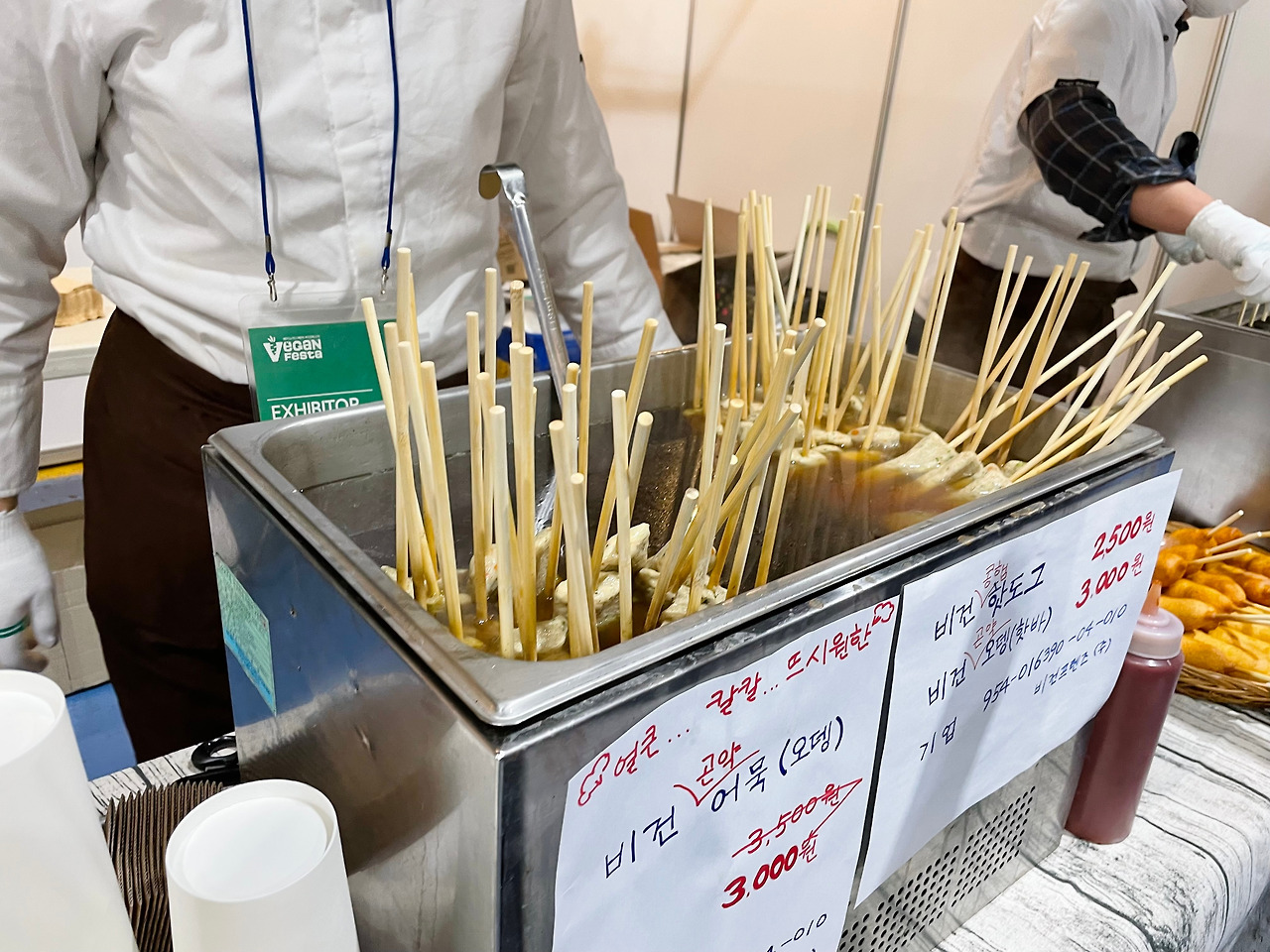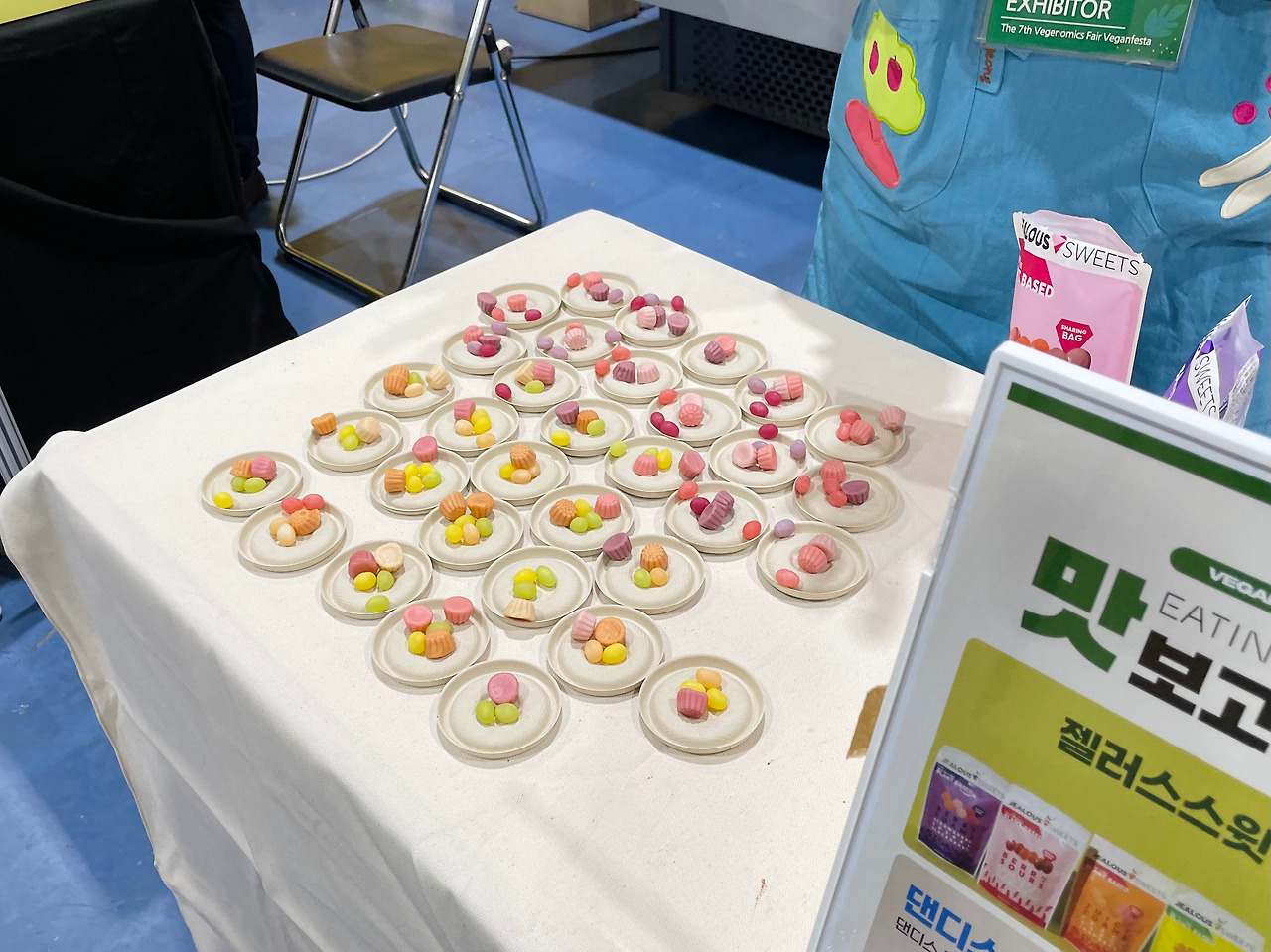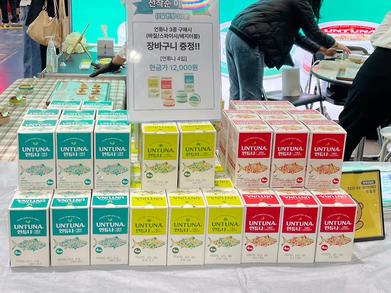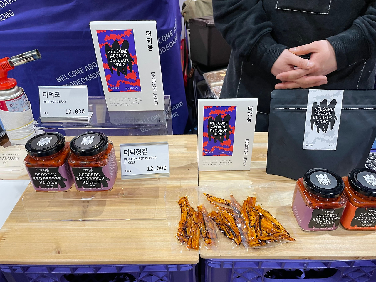 비건으로 젤리도, 참치도, 젓갈도, 만두도 다 가능한 세상에 도착했다. 익숙한 반가움과 신선한 즐거움이 팡팡 터지는 이곳은 내겐 놀이공원과도 같았다. 언제 먹어도 맛있는 비건 젤리 '젤러스 스윗'과 샌드위치에 넣어 먹기 좋은 비건 참치 '언튜나'를 지나 항상 쟁여두는 비건 땅콩버터를 처음 보는 브랜드 '빈크런치'에서 구매했다. 더덕라떼를 사려고 찾아간 '더덕몽'에서는 더덕젓갈을 보고 신선한 충격을 받았다. 젓갈도 비건이 된다고?! 살까 말까 고민하다 안산 것들 중 가장 후회하고 있는 아이템이다. 저 젓갈이 내 집에 있었어야 해.