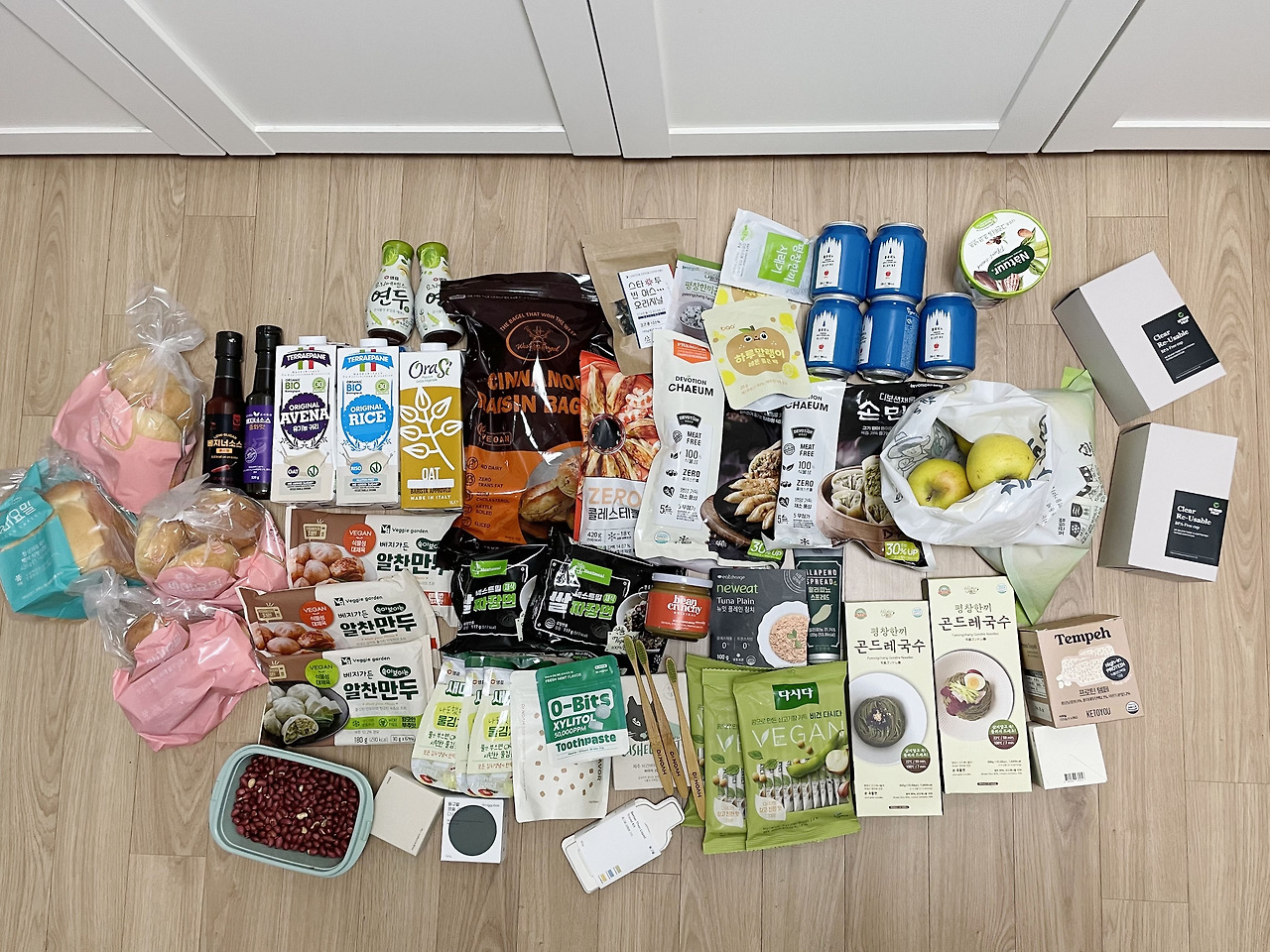 한 번에 모아보니 정말 많네. 하지만 이 글을 쓰고 있는 지금은 이미 절반 이상이 시라졌다. 오랜만에 정말 마음껏 쇼핑한 시간이었다. 맛있고 건강한 음식들을 구매할 수 있어서 좋았고 친환경 포장까지 선보이는 기업들의 제품은 소비자로서 나서서 응원해주고 싶은 마음이 들었다.