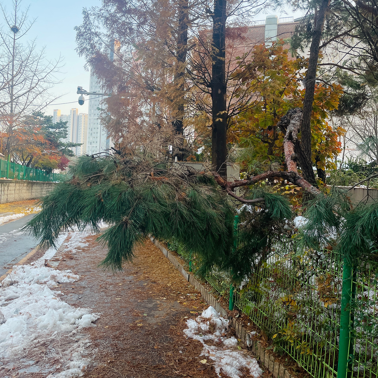 거리엔 눈의 무게를 견디지 못하고 부러져 버린 나무를 심심치 않게 발견할 수 있었다. 이미 많은 것을 돌이킬 수 없게 된 지금 어떻게 해야 부러지거나 꺾이지 않고 계절의 무게를 견뎌낼 수 있을까.