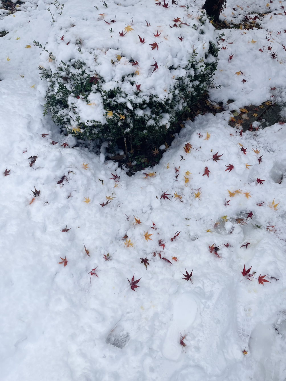 소복이 쌓인 눈 위에 단풍잎이 우수수 떨어져 있는 모습을 발견했다. 원래 이렇게 단풍이 다 떨어지기도 전에 눈이 왔었나. 하나의 계절이 사라져 두 개의 계절이 공존하는 것처럼 느껴져 기분이 묘했다. 예전엔 당연했던 것들이 자연 속에서 사라져가는 모습을 바라보는 지금 또 어떤 익숙한 것들이 미래의 추억 속에 저장될까.