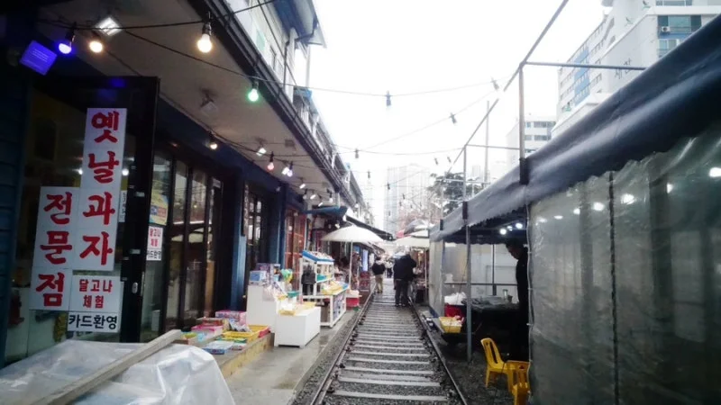 시작은 좋았다. 철길 양옆으로 가게들이 쭉 늘어서 있었는데 옛 문구점을 떠올리게 하는 추억의 물건들이 많았고 달고나 만들기 체험을 할 수 있는 곳도 있었다. 아이에게 사진을 찍어보라고 오래된 디지털카메라를 목에 걸어주었다. 아침을 많이 먹어 배는 부르지만 가래떡 구워 먹는 거라도 함께 해볼까 말까 그런 고민을 하며 철길을 걸었다.