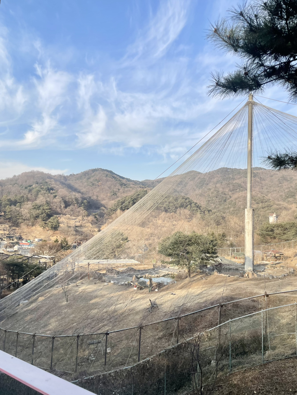 청주동물원은 언덕에 지어진 동물원이었다. 공원처럼 언덕을 올라가고 계단을 오르내리며 동물들이 있는 공간을 구경했다. 동물들의 공간을 최대한 넓게 보장해 주려고 노력한 것 같았고 이동 통로도 있었다. 과거 기사를 찾아보니 표범의 이동 통로로 공사를 했던 것 같은데 우리가 갔을 땐 표범을 보지는 못했다. 코끼리도 판다도 없는 동물원이지만 우리나라 토종 동물이자 멸종 위기종인 스라소니는 있는 그런 동물원이었다.