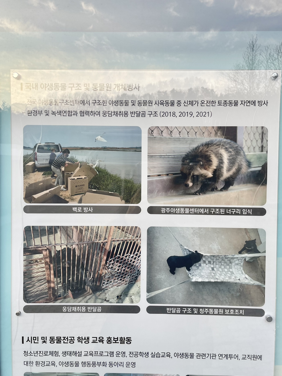 청주동물원의 비전과 계획에 대해서 읽어보았다. 첫 시작은 이곳 역시 인간의 유희를 위해 탄생한 동물원이었겠지만 동물 복지에 대해 책임감을 가지고 역할을 수행하고자 하는 다짐이 느껴졌다. 이렇게 동물원의 지난 과오를 부정하는 게 아니라 인정하고 문제에 책임감 있게 마주하며 변화하려는 이런 태도가 좋다고 느껴졌다. 당당하고 용기 있는 느낌.