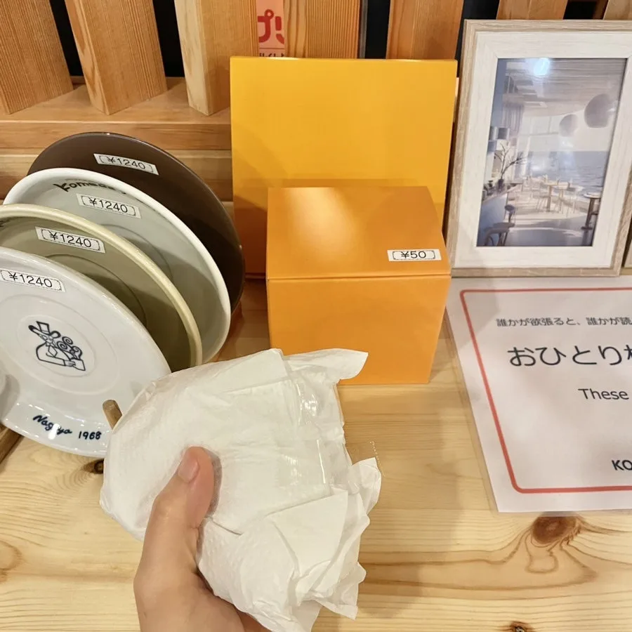 잔이 너무 마음에 들어 결국 구매했다. 아이가 우유를 마셨던 잔인 가운데 베이지 색상으로. 상자 포장은 50엔 추가해야 하지만 포장은 최소화하는 게 좋으니 거절했다. 면 주머니 속에 넣어 무사히 집으로 가져왔다.