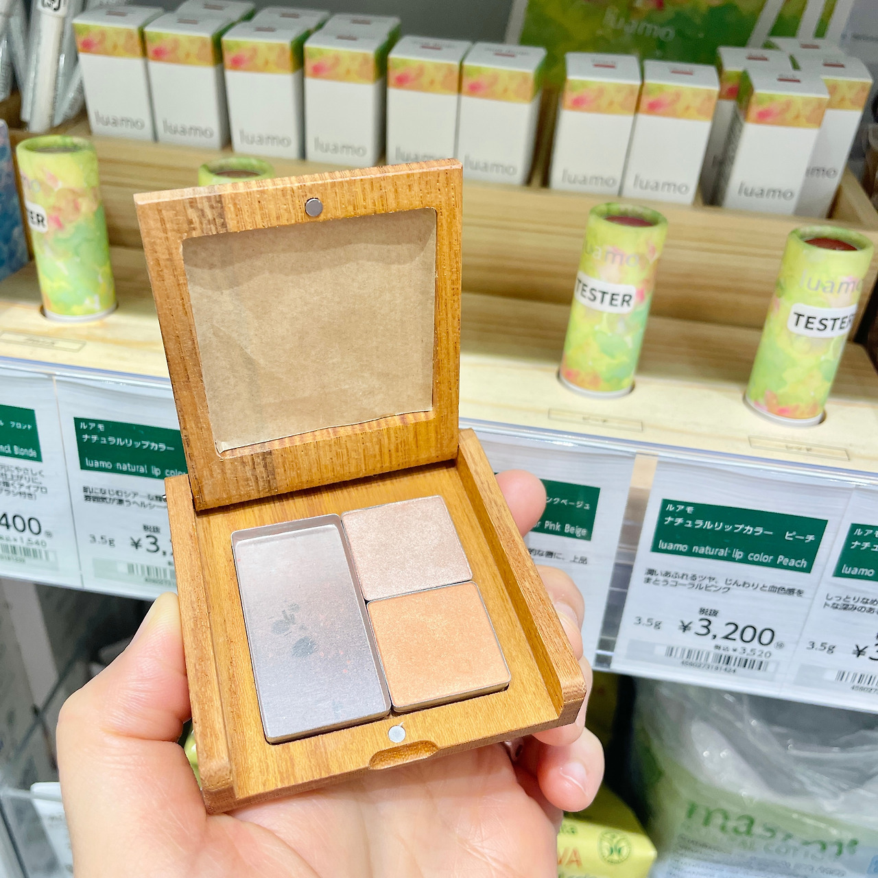 나무와 종이패키지의 친환경 뷰티 브랜드도 인상적이었다. ‘루아모(Luamo)’라는 브랜드인데 일본 브랜드로 동물 실험을 하지 않고 동물성 원료를 사용하지 않는 비건이며, 색소나 향료, 방부제 등 모든 성분을 자연 유래 원료로만 사용한다. 세계적으로 인정받는 유기농 화장품 인증인 Nature 인증을 받았다. 종이 패키지를 사용한 립스틱을 비롯해 섀도 팔레트는 천연 원목을 사용했고 자석으로 리필이 가능하다.