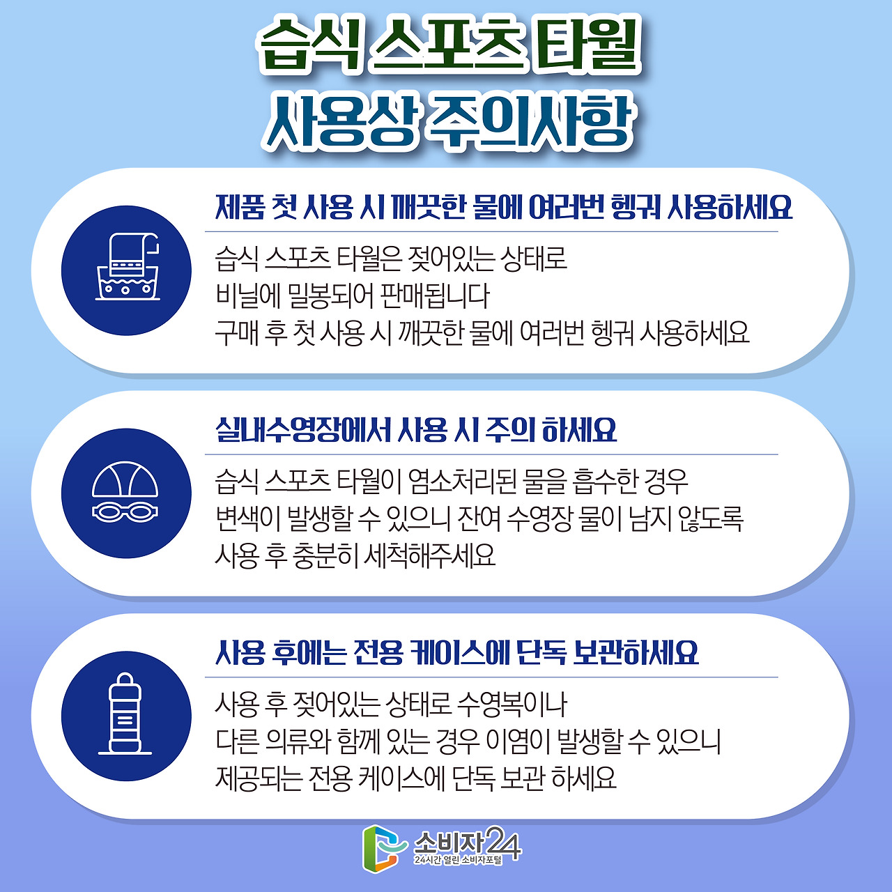 습식타월은 반드시 헹군 후 사용해야 하고, 사용 후에도 잘 관리해야 한다.