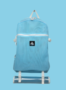 미들핀, 마스크, 스노쿨, 목욕가방까지 모두 한 번에 넣을 수 있는 메쉬 소재 3중 포켓 백팩.