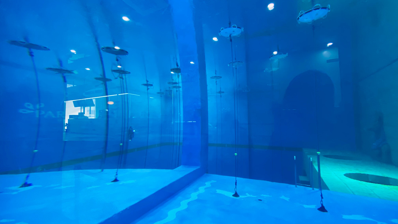 - 마지막 깊은 호흡(최종 호흡)을 한 뒤, 스노클을 입에서 빼고 입을 다문 채로 압력 평형(프리이퀄라이징)을 한다.