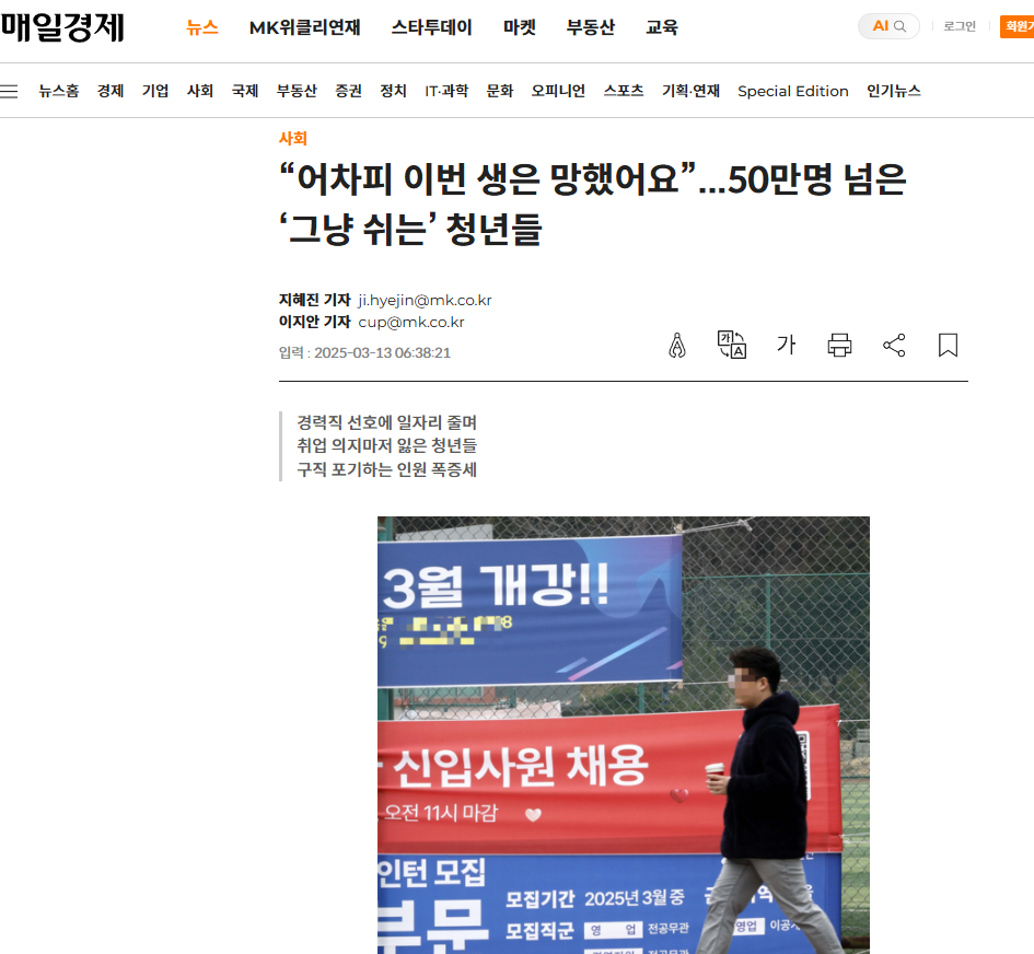 최근 뉴스를 보니 ‘그냥 쉬는’ 청년이