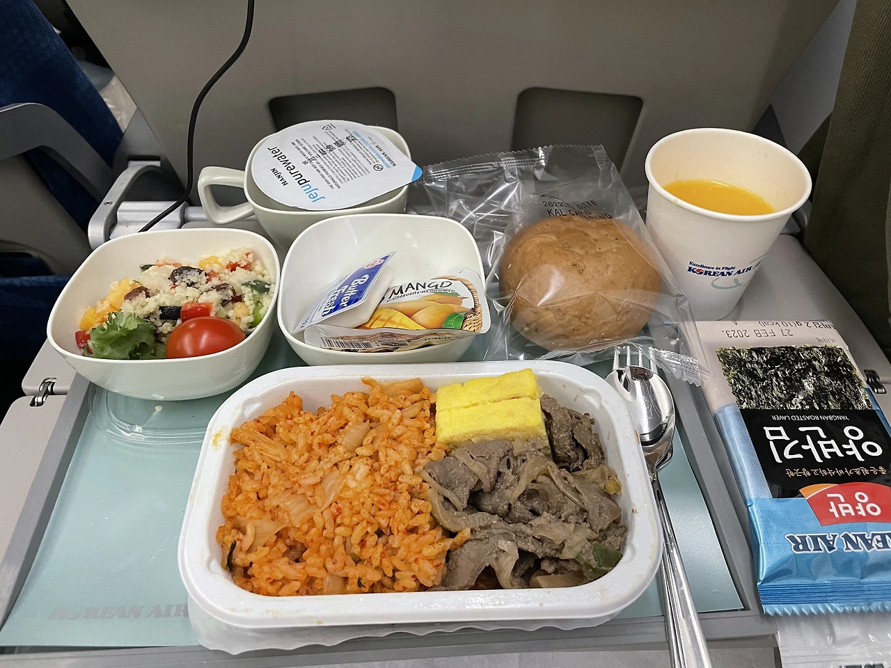 첫 기내식, 창 밖으로 끝없이 보이는 구름이 나를 최대한 설레게 만들었다.