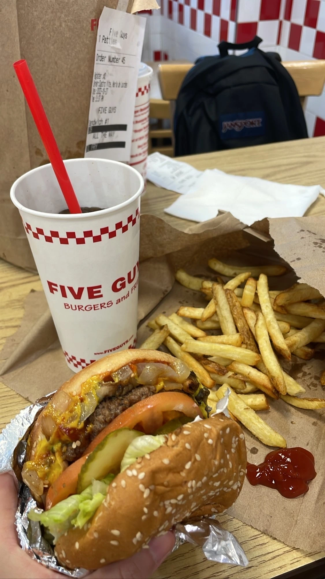 의아한 표정의 직원 덕분에 다행히 파이브가이즈를 온전히 즐길 수 있었다.