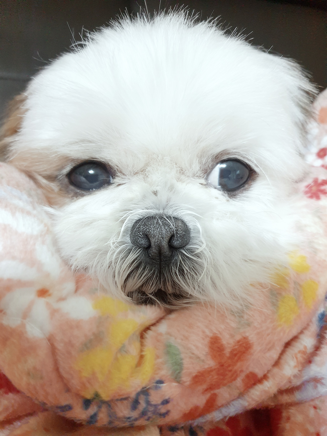 여전히 명민하게 간식을 얻어먹는 센스가 있고, 다른 강아지들에게 지대한 관심을 보입니다. 산책 때 맡는 바깥의 냄새도 사랑해마지않고요. 낯선 사람에게는 예민하게 짖어대기도 하죠. 게다가 만 12세가 믿기지 않는 나름의 동안(!)이기도 합니다.