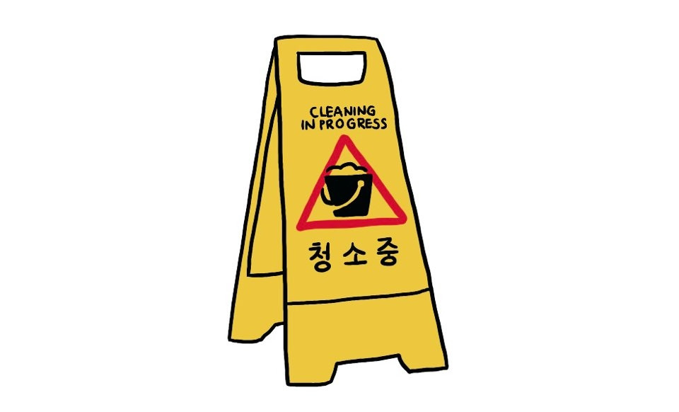 여자 화장실의 마지막 칸은 대개 청소 도구함으로 쓰인다. 막대걸레 등을 보관해 두거나 화장지와 같은 소모품을 쌓아두는 용도랄까. 한 번은 그 마지막 칸 문이 열린 채 사람의 것으로 보이는 발이 삐죽이 나와 있어 식겁한 적이 있었다. 알고 보니 청소 도구들과 함께 작은 의자가 놓여 있었고, 유니폼도 걸려 있었다. 이를테면 미화원 이모님들이 쉬는 장소였던 것이다.