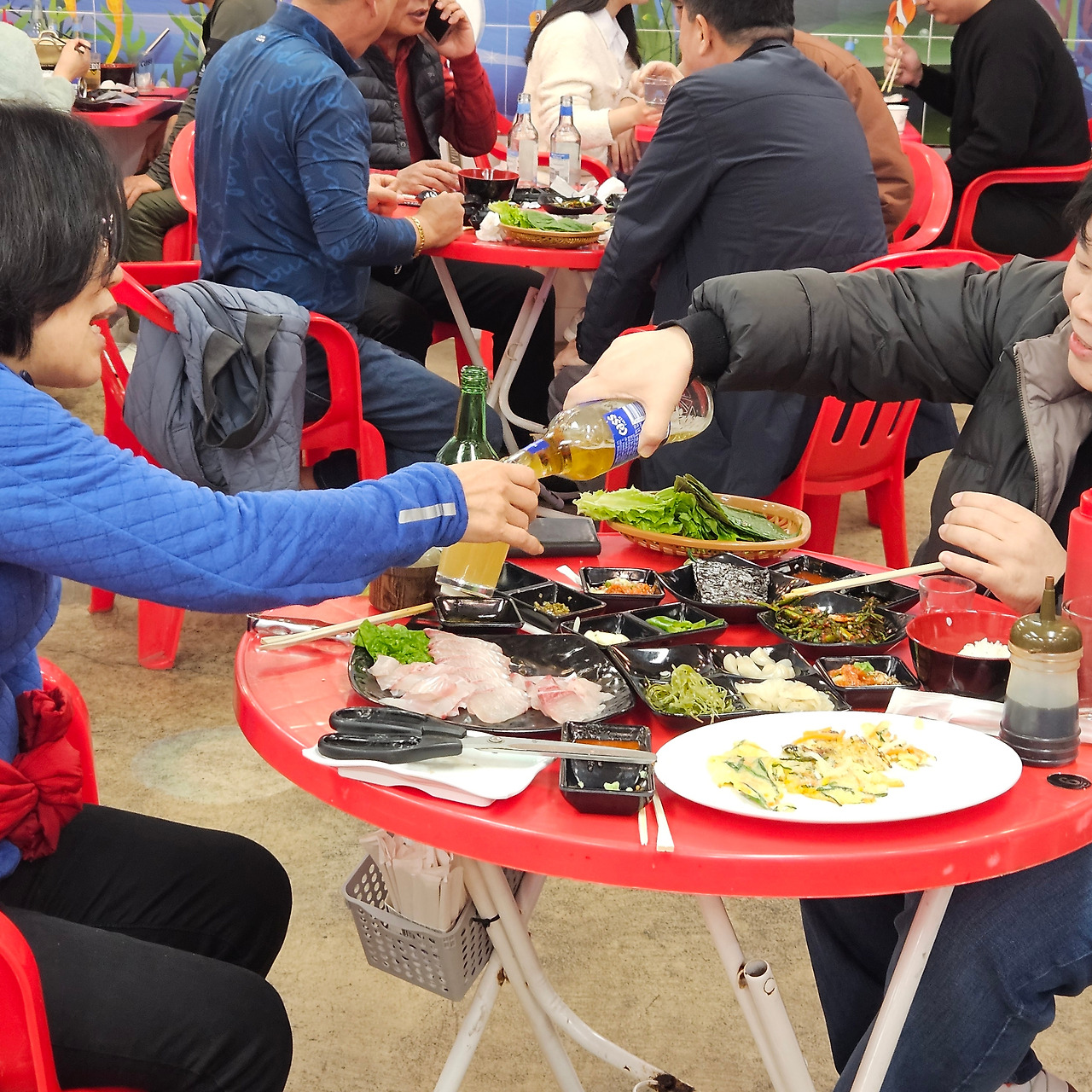 이제 다시 제주시로 돌아간다. 가는 길에 로컬들이 자주 찾는 수산회시장에 들러 도미회로 저녁을 먹는다. 관광지보다 로컬 식당을 선호하는 편이라, 이곳은 자주 찾게 된다. 수산시장 분위기지만 생각보다 깔끔하고, 무엇보다 신선하다.