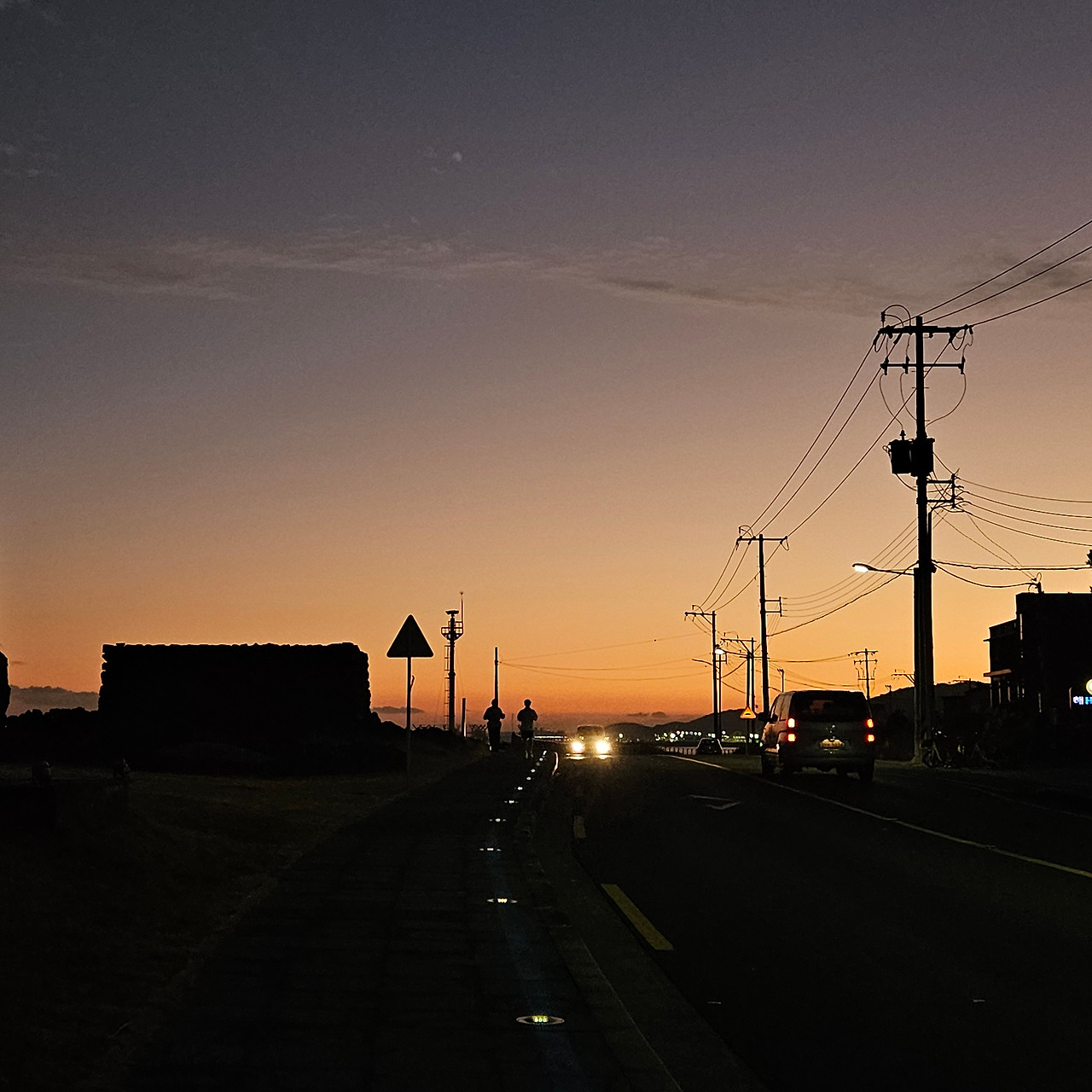 남쪽으로 더 내려가 협재해변에 도착했다. 해 질 무렵, 협재해변에 차를 세우고 노을을 기다린다. 여름에 노을을 보며 밤수영을 했던 기억이 남아 있는 곳이다. 이 시간의 협재해변은 노을과 선셋을 기다리는 사람들로 가득하다.