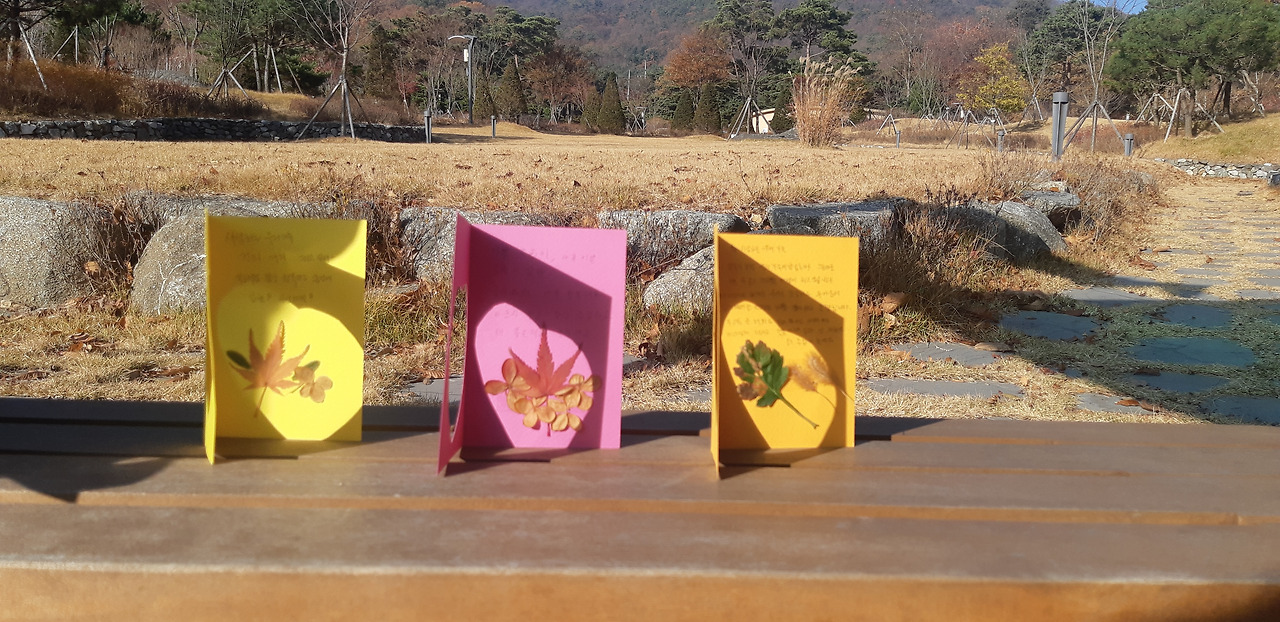 한참, 시간이 흘러 가족과 함께 간 숲 해설에서 해설하시는 분이 아빠들에게 미션을 내주었다. 주변 식물들을 이용해 부인에게 편지를 쓰라고.. 남편이 쓴 편지를 읽는데 나도 모르게 울컥했다. 주책맞게..