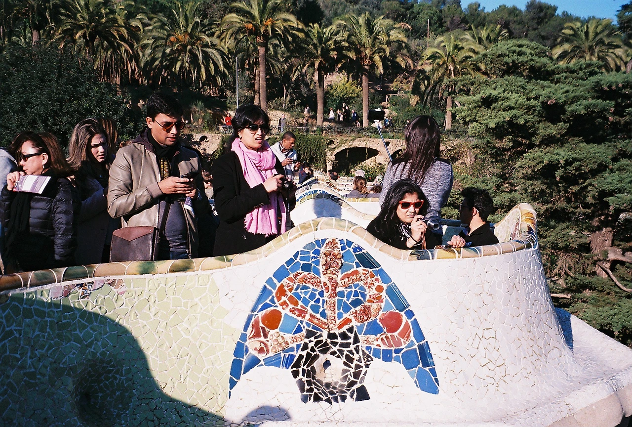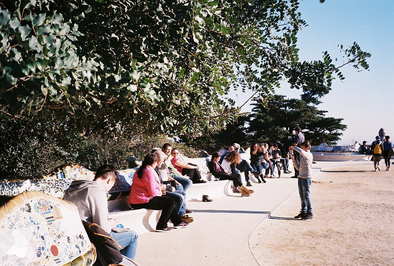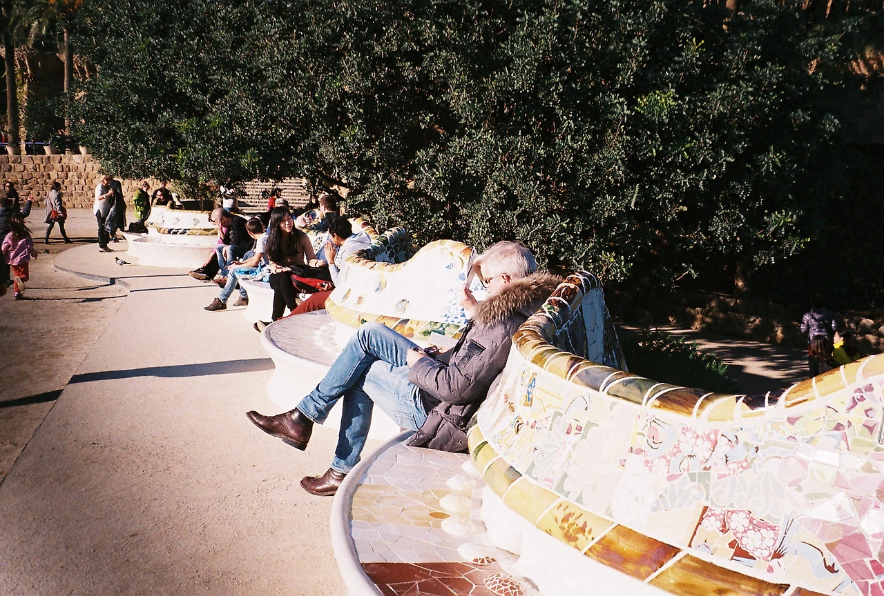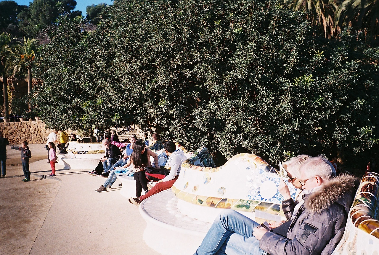 파도를 닮은 길고 구불구불한 곡선의 벤치는 가우디가 실제 인부들의 신체 치수를 재가며 만든 것이다.