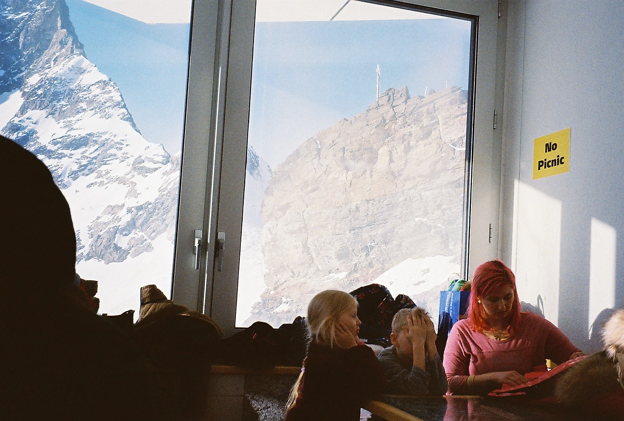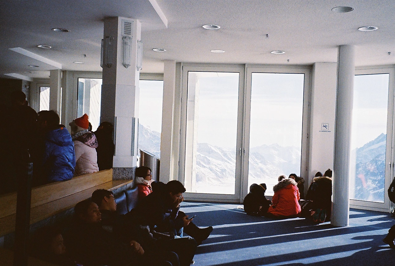 너무 추우면 안으로 들어와 아주 잠시 몸을 녹였다. 그리고 조금 괜찮아졌다 싶으면 다시 나가서 융프라우 정상의 눈과 산맥의 모습을 바라보았다.