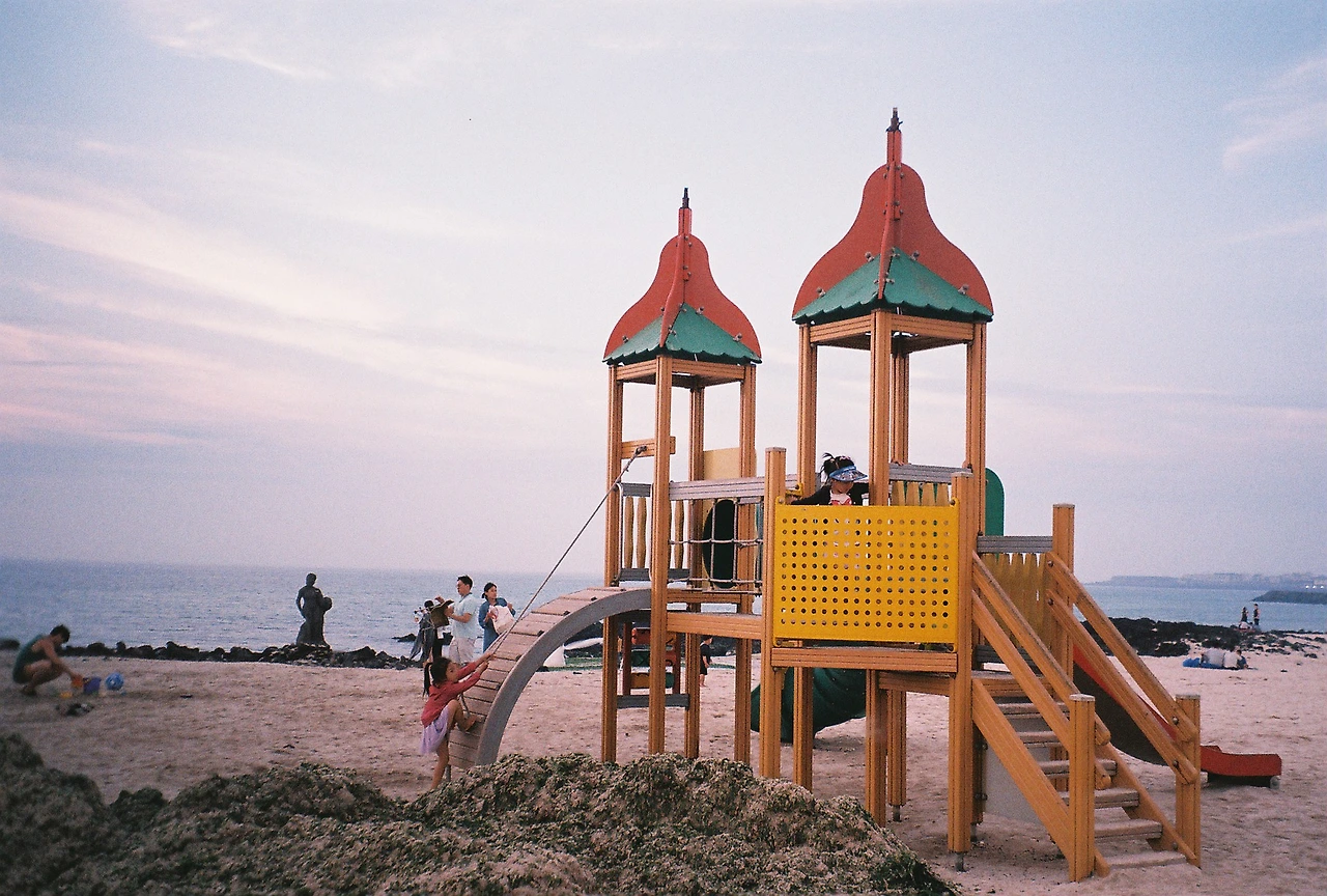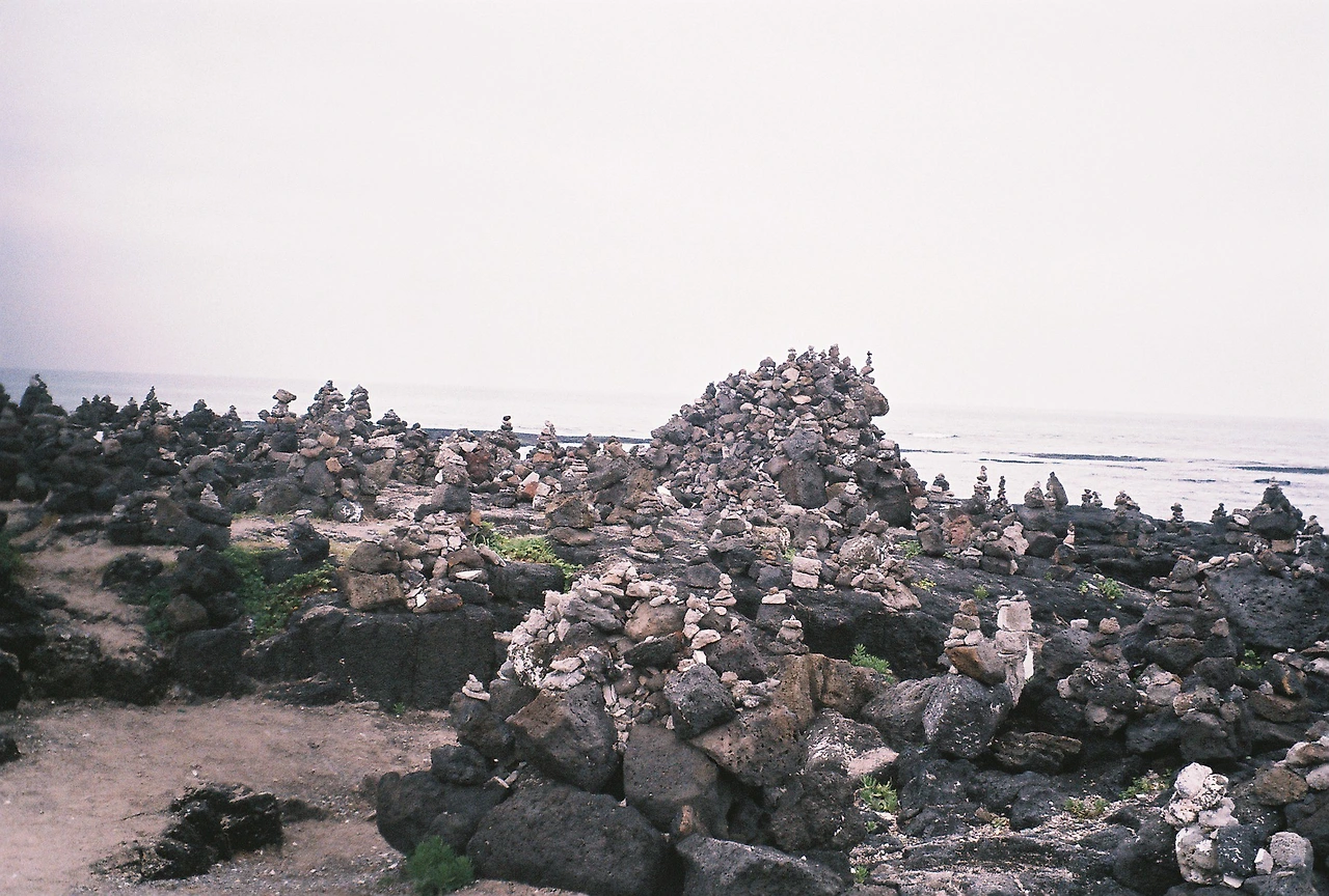 우도 도항선 위로 뭔가 탑처럼 쌓여있다