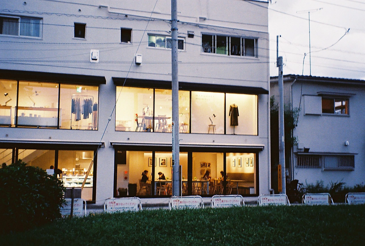 마가렛 호웰 옆에는 작은 잔디밭이 있다.