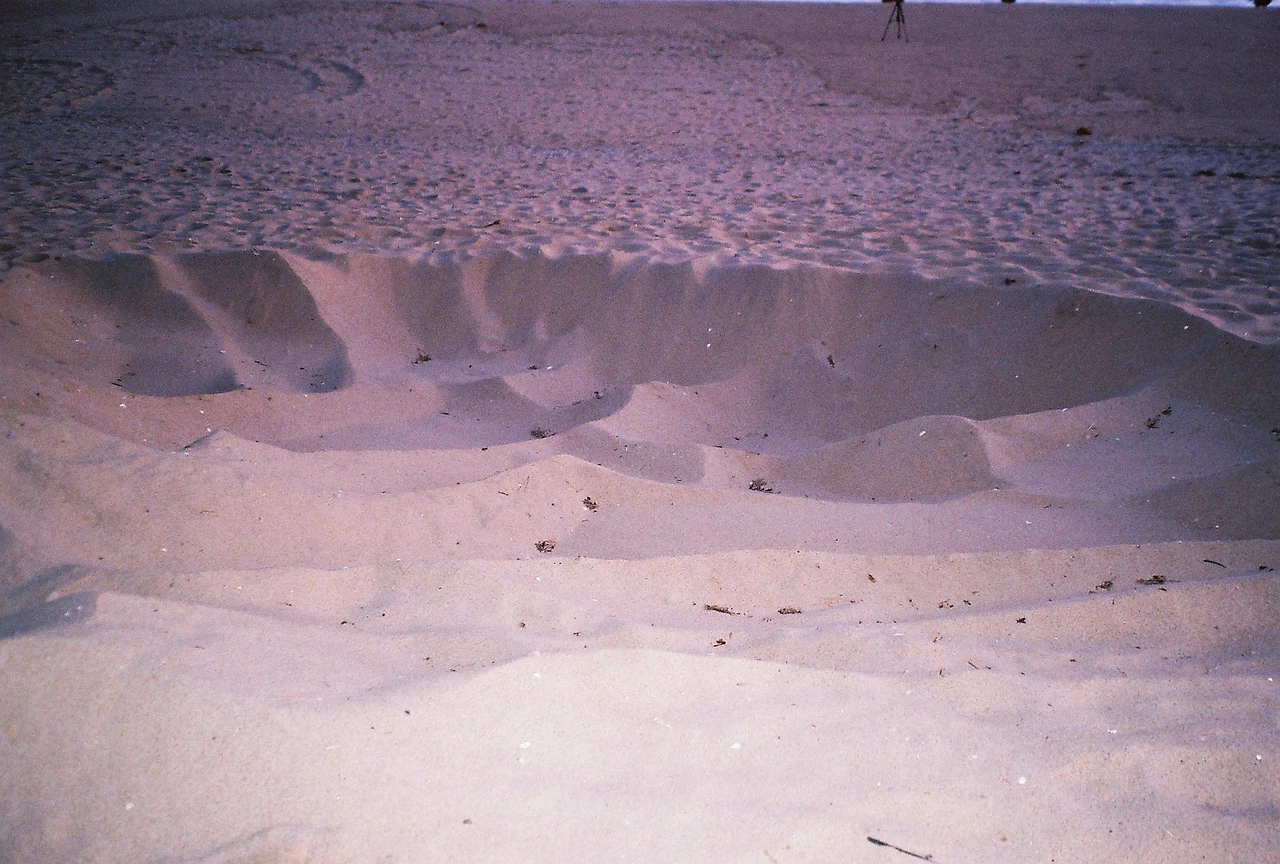 우주선이 잠시 쉬었다 간 자국처럼 파여서는.