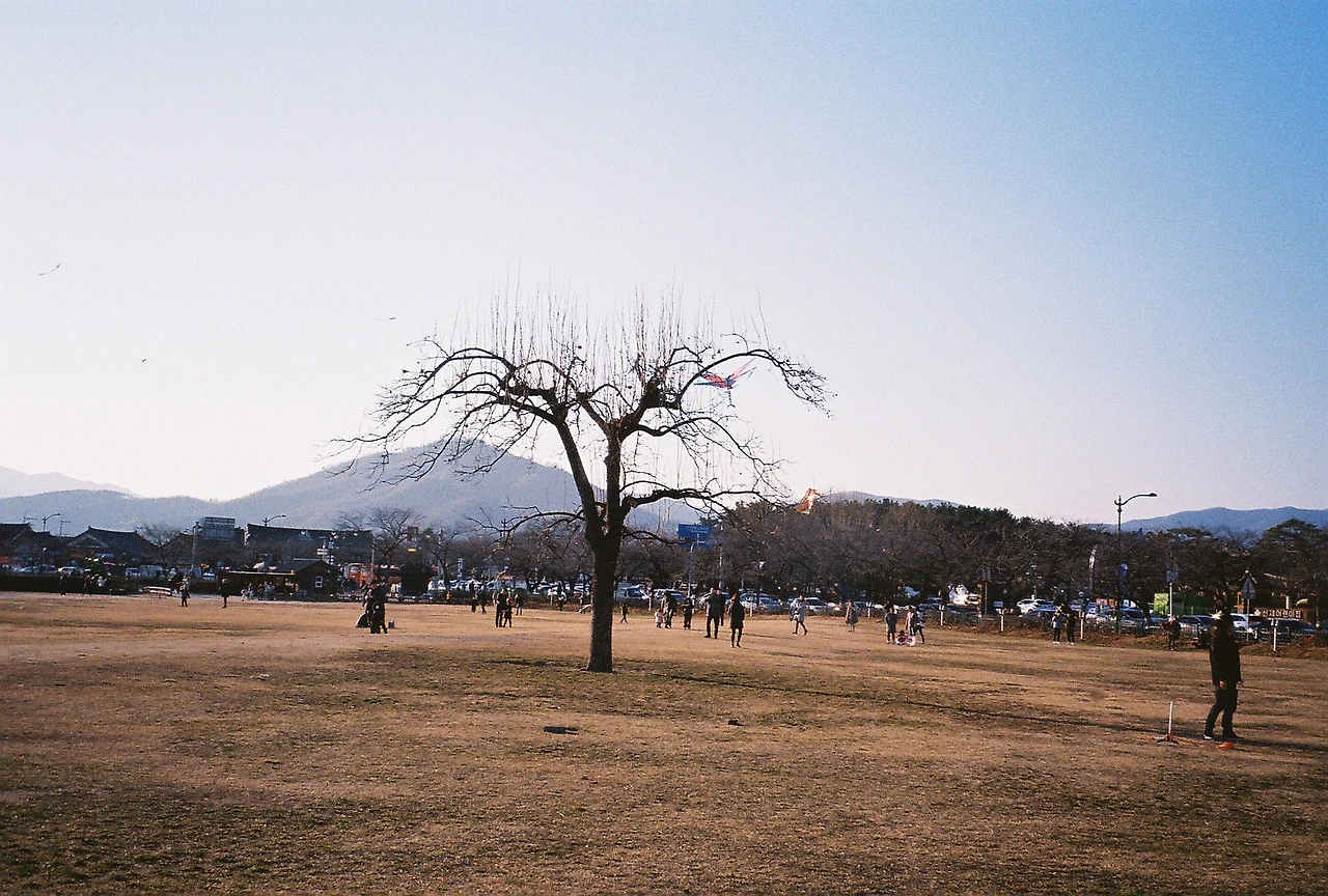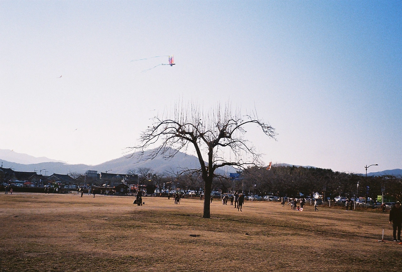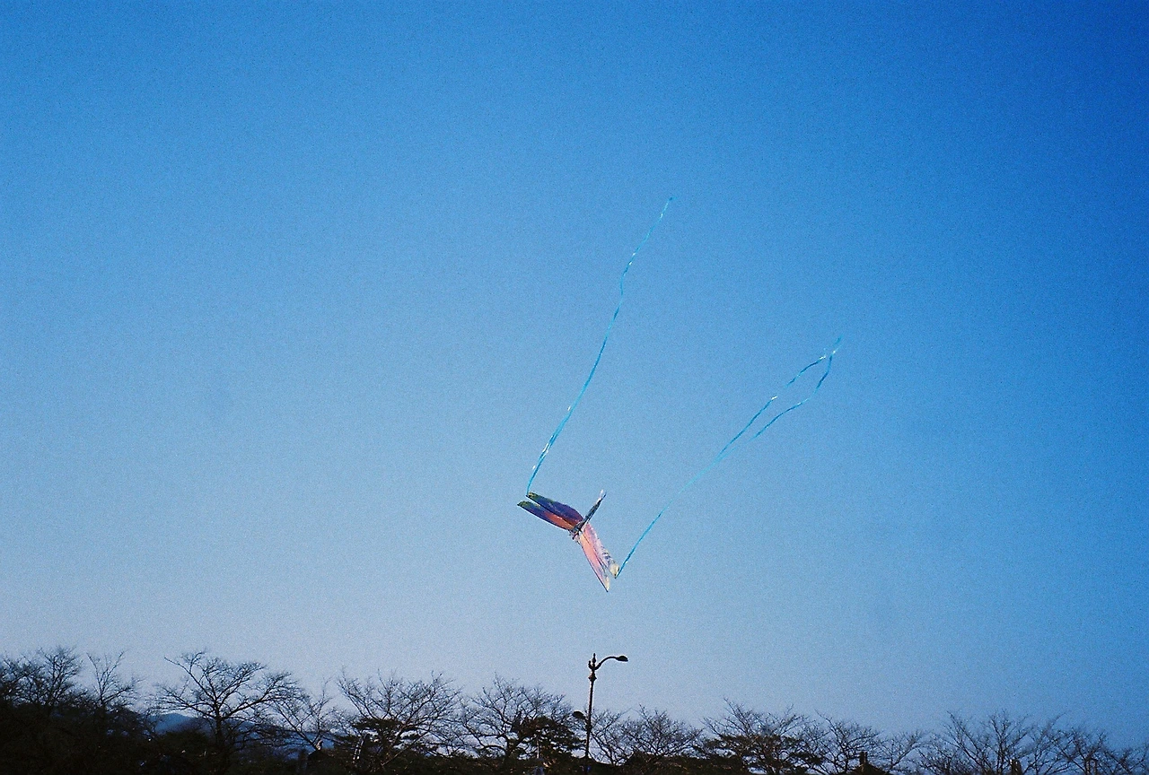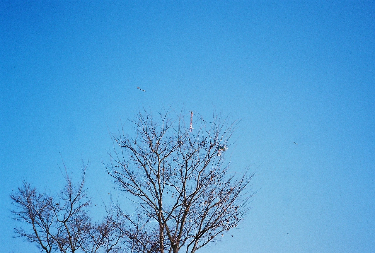 나무의 주변엔 찢겨진 연의 잔해와 사람들이 있었다.