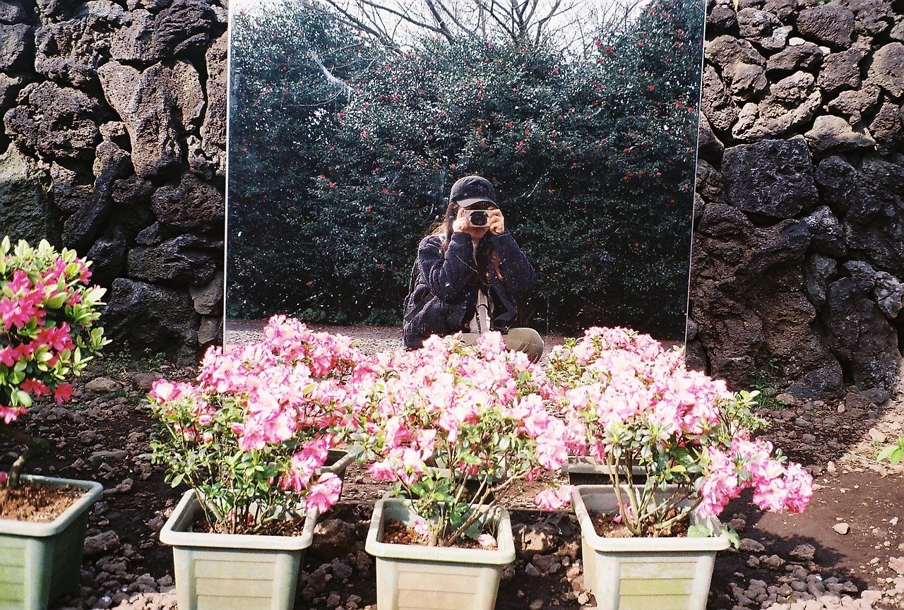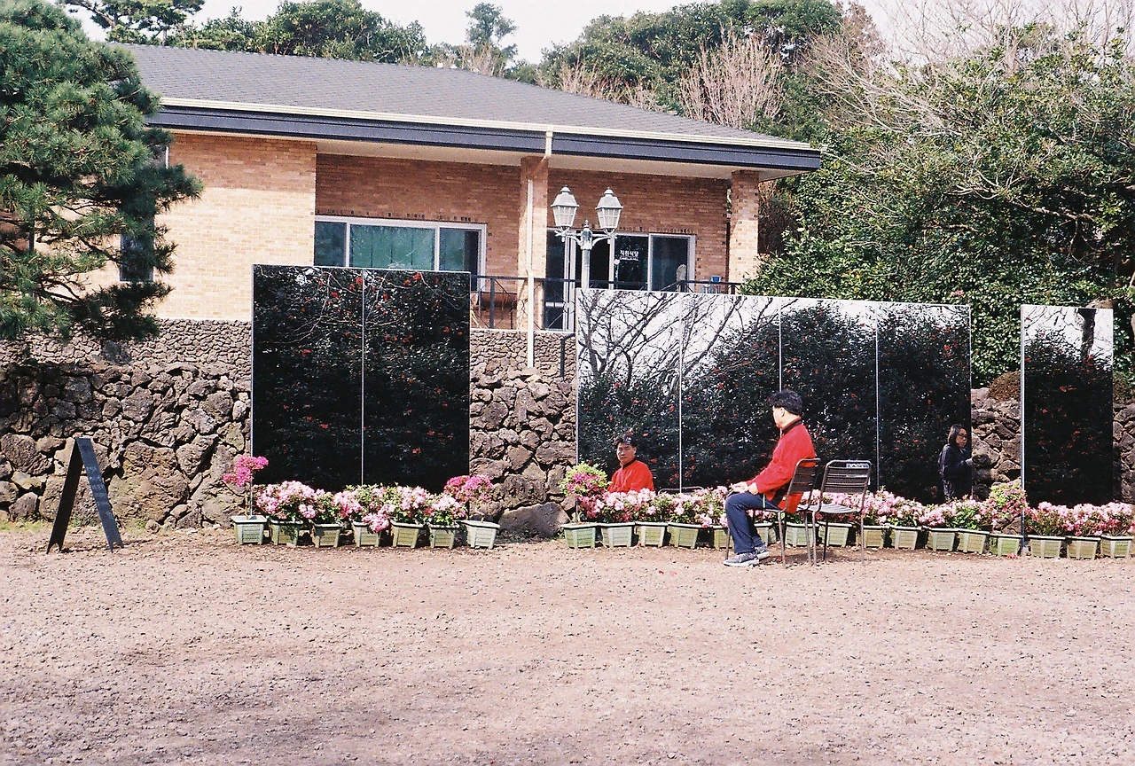 빨간 옷을 입은 남자와 어쩐지 비슷해 보이는, 거울에 비친 우리의 모습을 카메라에 담았다.