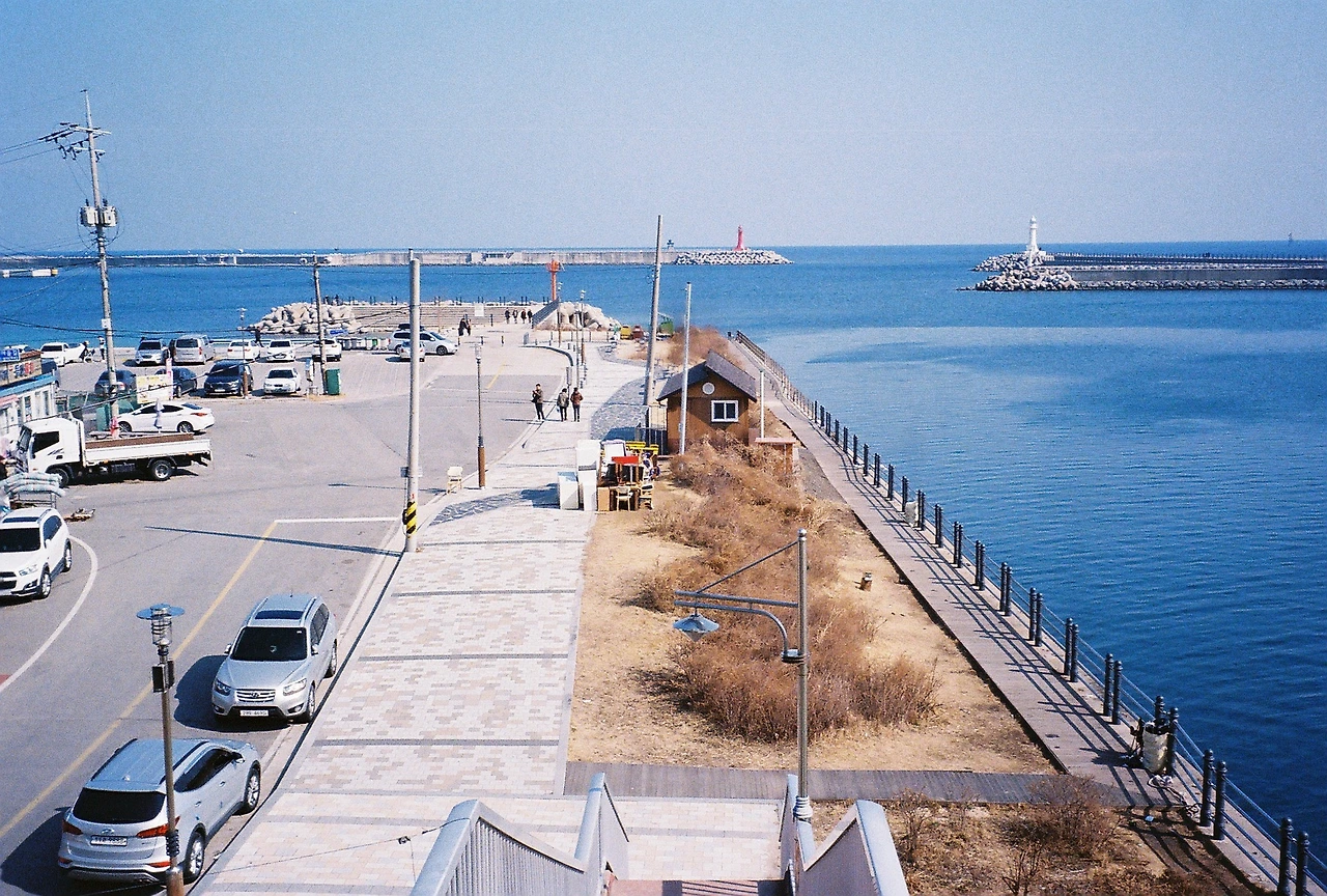 강릉 안목해변: 하얀 다리, 노란 다리, 빨간 다리
