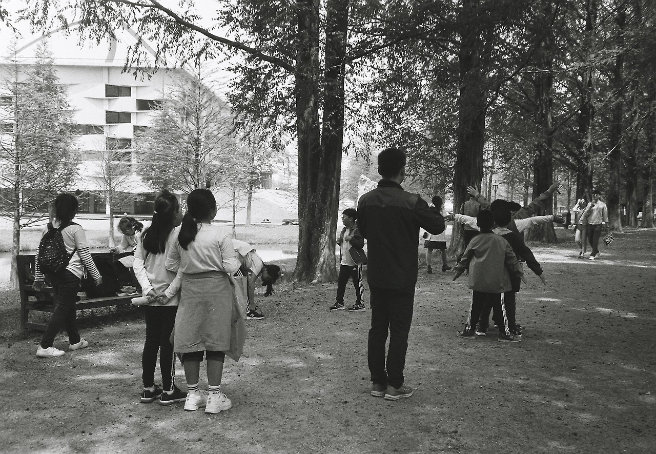 장난꾸러기들이 비행기 날개처럼 팔을 쭉 뻗고 줄지어선 채 포즈를 잡고 있는 모습에 풋, 하고 웃음이 나왔다.