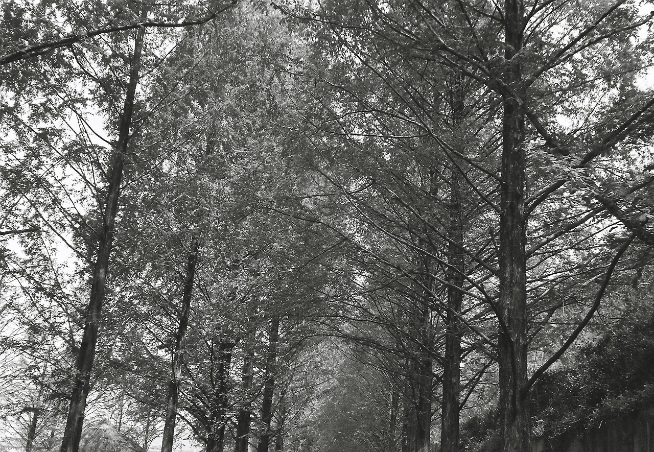 반면 정적인 에너지를 품은 채 우뚝우뚝 솟아있는 나무들.