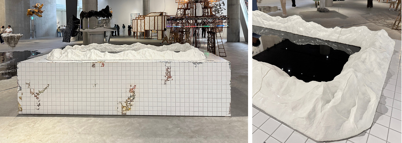 빛의 휘장을 두른 난파선은 이상향으로 향하는 돛을 달고 허공에서 표류 중이다. 브루노 타우트가 설계한 ‘빛의 도시’처럼 반짝이고 눈부신 표면, 압도적인 공간감은 즉각적인 황홀감을 준다. 하지만 이내 눈길을 끈 것은 거대한 그림자다. '달콤함' 아래, 어두운 물결을 간과하지 말라는 경고를 동시에 건넨다.