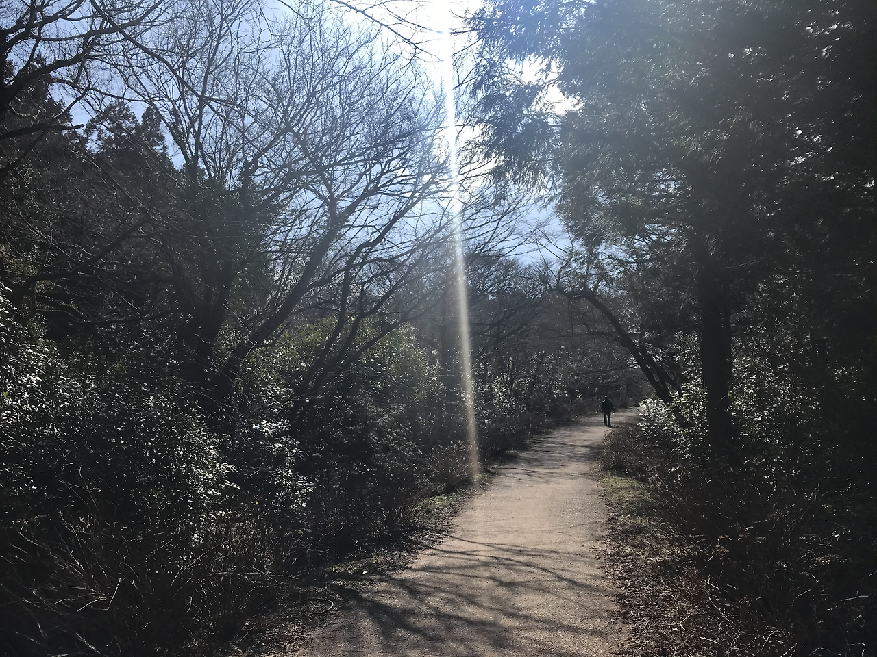 그리고 한참을 내 발소리 밖에는 들리지 않았다. 간간히 보이던 사람들은 한 명도 보이지 않았다. 풍경을 담기 위해 잠시 멈췄던 것이 간격을 만들었나 보다. 다시 걷기 시작하니, 멀리서 천천히 힘겹게 산을 오르는 어르신 모습이 보였다. 한 손에는 생수를 든 채, 오르막길을 오르시는 발걸음에 삶의 무게가 느껴졌다. 그 분이 검지 한 마디 만큼 작아졌을 때, 갑자기 핸드폰을 꺼내 카메라를 작동시켰다. 찰칵.찰칵.찰칵. 무음이라 소리는 나지 않았다. 점처럼 작아지는 어르신을 카메라에 담았다. 그리고 고독이라 제목을 붙였다. 어쩌면 누군가 그 시간, 내 뒷모습을 카메라에 담아 또 다른 제목을 붙였을 지도.