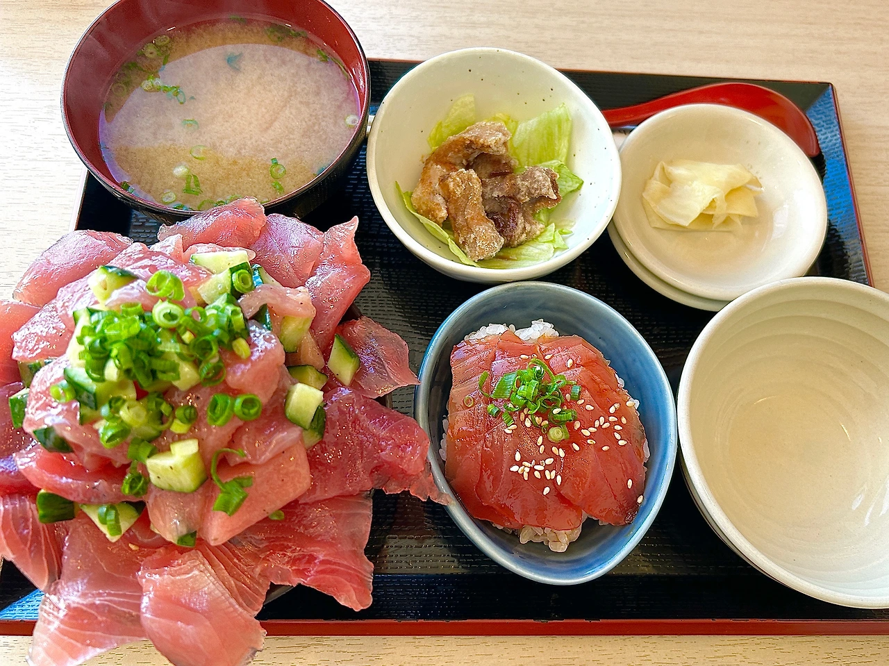 마구로를 원 없이 먹어보겠다고 일부러 찾아온 곳이지만, 원래 가려던 식당에는 못 가고 다른 곳으로 노선을 틀었다. 가게 밖에 마구로 잔뜩 올려진 사진이 있는 걸 보고 들어간 반노우수산(バンノウ水産). 시미즈항도 보이고 가게도 깔끔하고 좋았다. 어중간한 시간이라 사람이 없었는데 먹고 있으니 일본인 노부부가 들어와서 맛있는 곳이라고 하는 소리를 듣고 속으로 아싸!