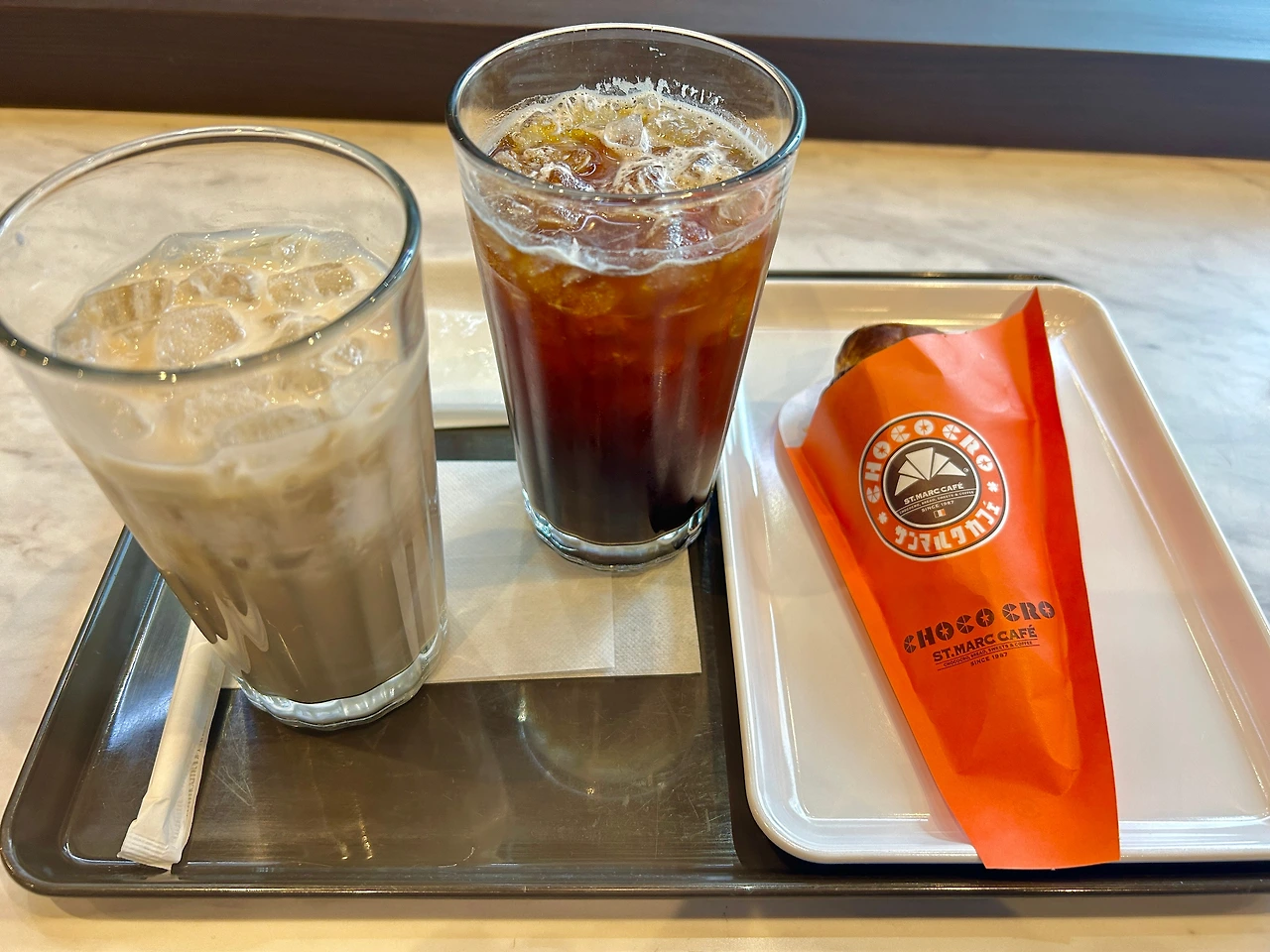 산마루쿠카페는 크루아상이지. 초코 크루아상이지. 대부분의 사람들이 체인점인 카페로 스타벅스를 찾곤 하는데, 개인적으로는 스타벅스보다 좋아하는 산마루쿠카페. 쵸코쿠로(チョコクロ)라는 초코 크루아상이 대표 인기 메뉴. 물론 대표답게 아주 맛있다. 커피 냄새보다 빵 굽는 냄새가 더 진하게 나는 산마루쿠카페.