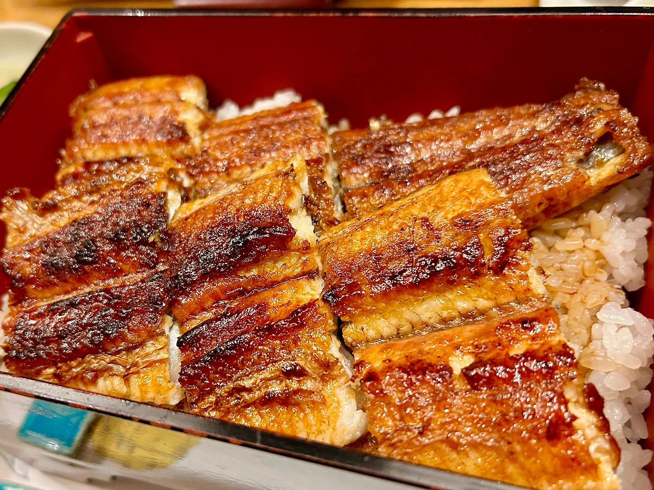 우나쥬(うな重)는 히츠마부시와 달리 다른 부가 재료 없이 밥 위에 장어가 얹어져 나온다. 별다른 방법이 정해져 있지는 않고, 동그란 그릇이 아닌 네모난 찬합에 나오는 것이 특징. 어느 쪽이든 맛있는 건 매한가지다. 살살 녹는 우나기. 가히 명물이라 할만하다.