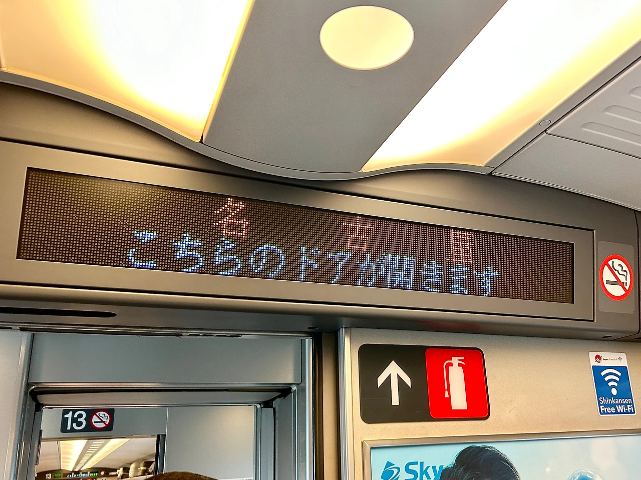 도쿄에서 시즈오카에 갈 때 탔던 히카리를 이번에도 탔다. 좌석이 넓어서 쾌적하고 좋은데 우리가 이동하는 구간이 짧다 보니 한 시간 정도만 타는 게 내심 섭섭한 신칸센 히카리. 50분 정도 탔는데 나고야에 도착했다는 안내가 전광판에 떴다. 나고야, 안녕?