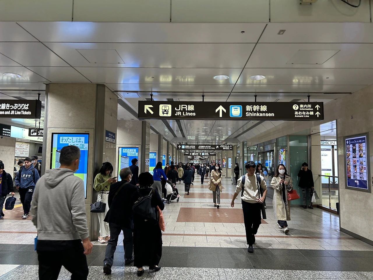 도쿄역을 방불케 하는 넓이. 현지인, 관광객, 외국인이 한데 섞인 복잡함. 지나다니는 사람들도 급하고, 도로를 달리는 차들도 급했다. 일본을 돌아다니면서 유일하게, 운전하는 차들을 보고 미친 거 아니냔 소리가 나온 지역이었다. 운전을 험하게 하는 일본이라니. 후에 이 감상을 일본인 친구에게 말했더니, 나고야라면 그럴 수 있다는 대답이 돌아왔다.