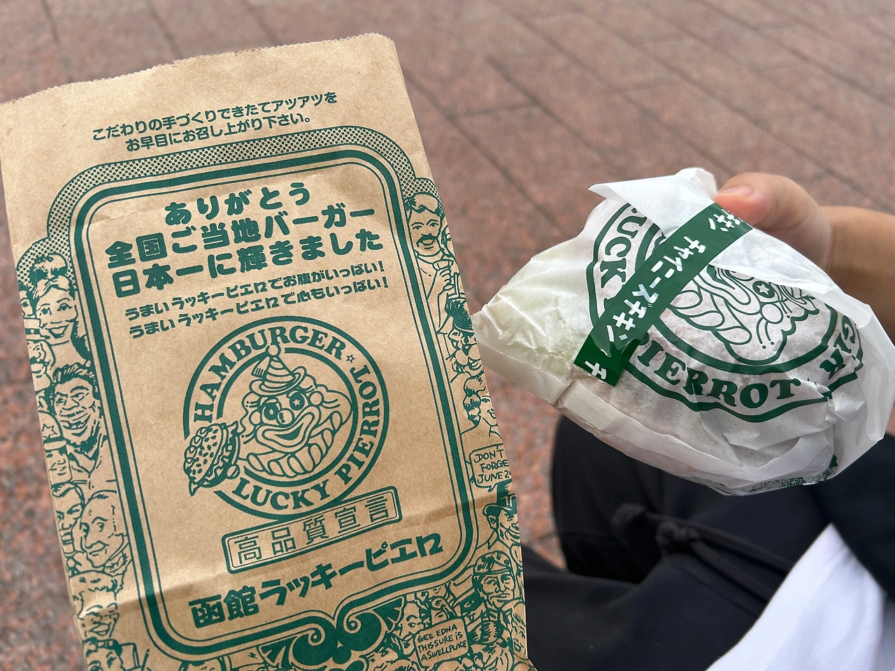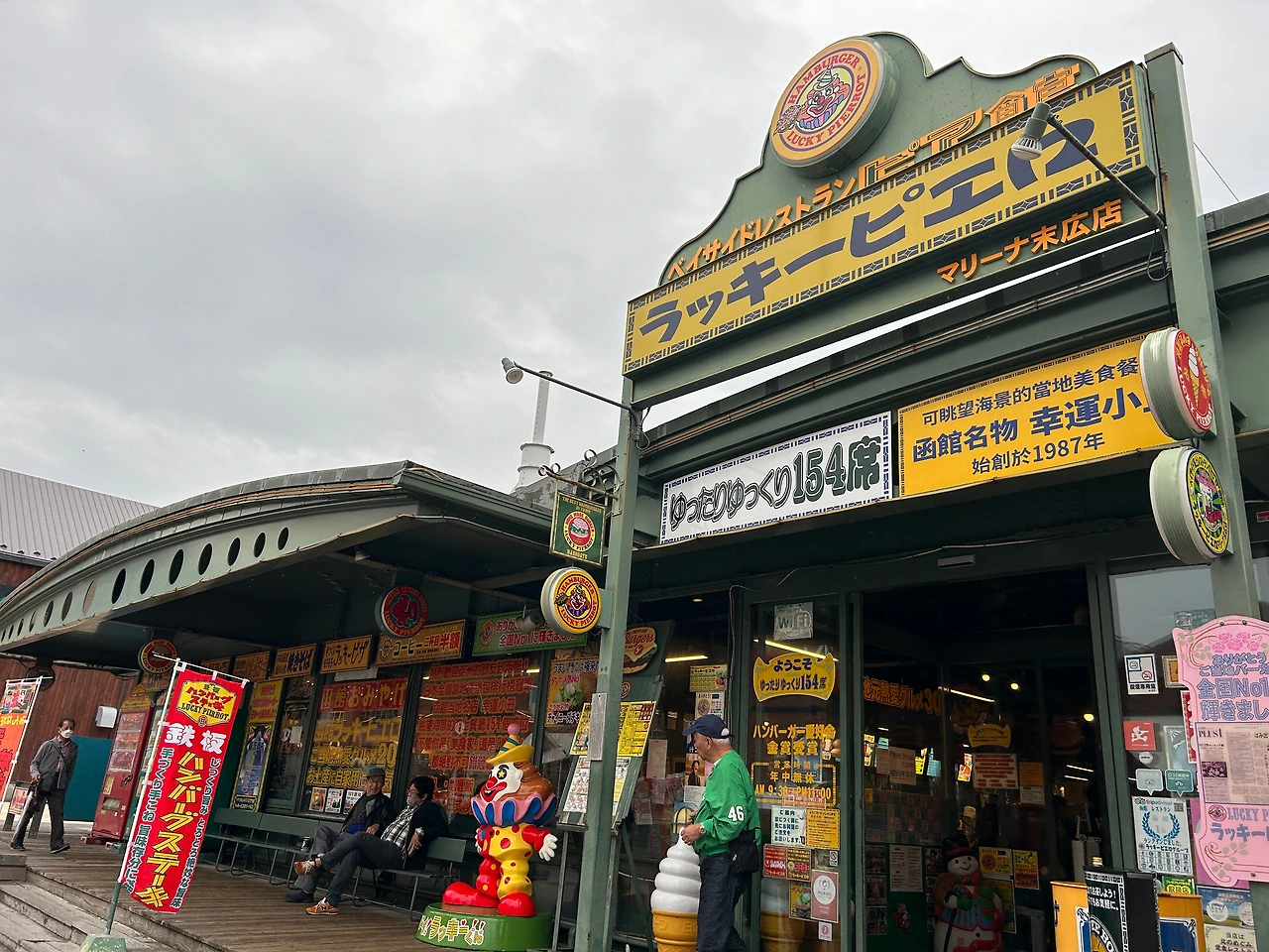 하코다테에만 있다는 럭키피에로(ラッキーピエロ). 근처를 걷다보면 본점도 있고 여러 지점이 있지만, 아카렌가 근처를 산책하느라 자연스럽게 그 근처에 있는 지점에 들어갔다. 명탐정 코난 극장판의 배경이 되기도 했다는 마리나스에히로점.
