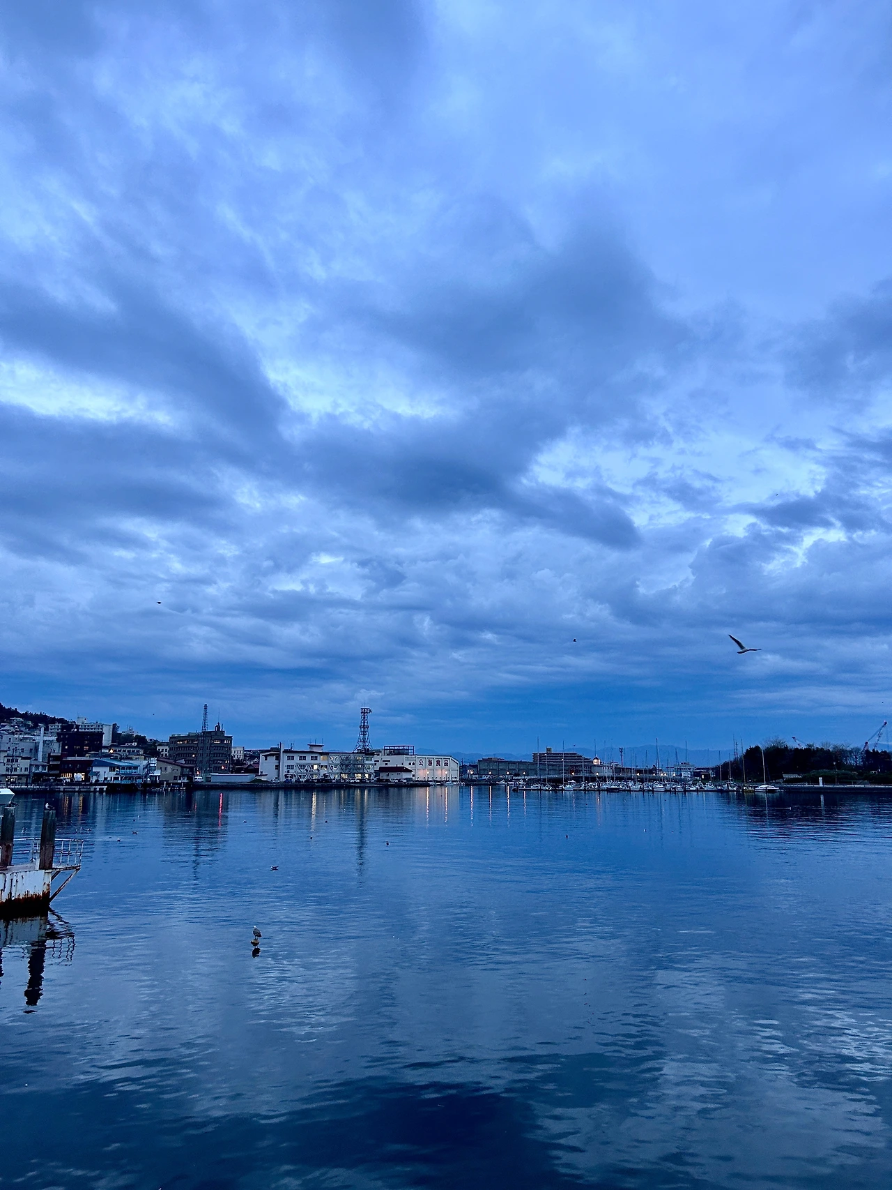 마음만 먹으면 바다를 볼 수 있는 환경에서 지내다가 그 환경과 작별하니 바다를 볼 기회 자체가 귀해졌다. 시원하게 철썩철썩 하얀 거품 토해내는 파도정도는 있어야 바다지! 하는 마음이 얼마나 경솔하고 사치스러운 것이었는지. 어슴푸레하게 저녁 하늘 머금은 잔잔한 항구만 봐도 이렇게나 좋은데 말이다.