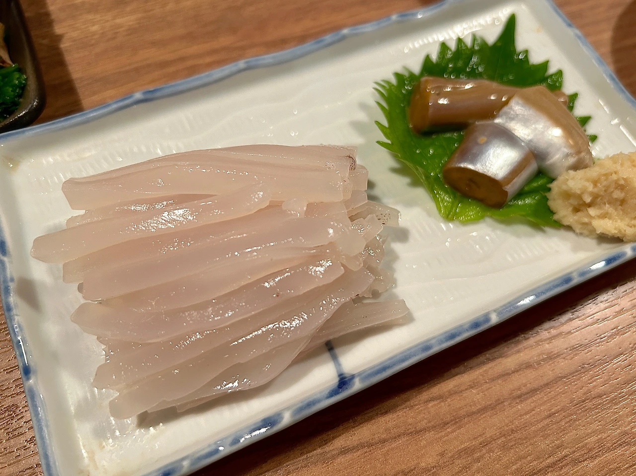 꼴뚜기를 회로 먹는 건 일본에서가 처음이었던 것 같다. 살살 녹는 야리이카를 함께 나온 내장에 찍어 먹었는데 이게 또 별미다. 별미야 별미. 눈에 별이 박힐 것 같은 맛있음에 웃음이 절로 나는 별미.