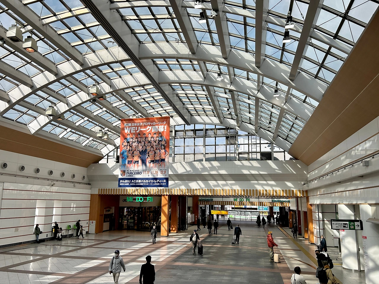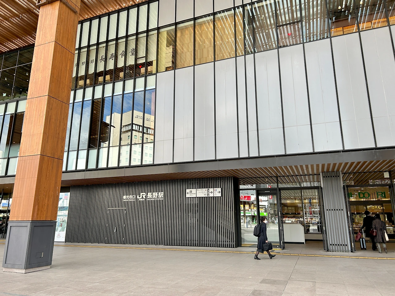 2015년에 재건축을 해서인지 나가노역은 무척 깔끔하고 쾌적했다. 역과 이어지는 상점이나 음식점도 많고 맞은편의 건물로 이동할 수 있는 육교도 있다. 기념품이나 특산물을 파는 곳도 역에서 바로 연결되기 때문에 신칸센을 이용해 여행하는 이들의 오미야게는 문제없겠더라.