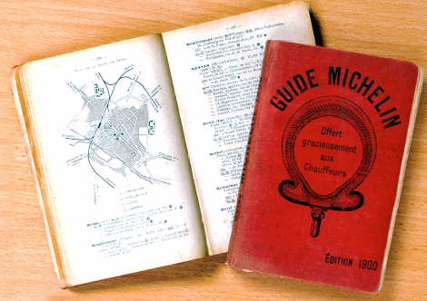 미슐랭 가이드는 1900년 파리에서 열린 세계 박람회를 계기로 탄생했다. 타이어 제조 회사인 미슐랭은 당시 박람회에 참가했던 자동차 소유자들, 잠정적 타이어 구매자들을 대상으로 관광 가이드북을 배포했는데, 반응이 좋았는지 이 무료 가이드북 제작은 그 후 1차 대전 직전까지 지속되었다고 한다. 믿거나 말거나지만, 무료였던 가이드가 유료가 된 계기는 전쟁 직후의 어느 날 우연히 발생했다고 한다. 미슐랭 타이어의 대표였던 두 미슐랭 형제가 어느 차량 정비소에 갔다가 이 미슐랭 가이드들이 대량으로 쌓여 차축을 고정하는 용도로 사용되고 있는 것을 목격했기 때문이다. 그렇게 미슐랭 가이드는 유료화가 된다.