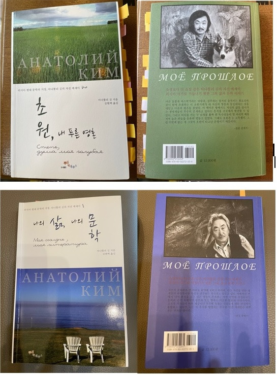 그때 러시아 한인들에 관한 자료들을 이것저것 찾아보다가 우연히 발견하게 된 책이 [초원, 내 푸른 영혼]과 [나의 삶, 나의 문학] 세트였는데, 이 책의 구입과 완독을 통해 한국계 러시아 작가로서 러시아 현대 문학의 거장으로 우뚝 솟아올라 위대한 문학가로 자리매김한 러시아 이주 한인 3세인 ‘아나똘리 김’을 처음으로 알게 되었다. 그는 소련 카자흐스탄에서 태어나 사할린 고등학교, 모스크바 미술대학, 고리키 문학대학을 거쳐 ‘러시아가 낳은 한국계 대문호’라는 명성과 찬사를 받고 있는 위대한 작가였다. 처음에는 단순한 호기심으로 이 책 세트를 구입해 찬찬히 읽어보게 되었는데, 책을 읽으면서 포스팅하고 싶을 만큼 의미롭게 다가오는 구절마다 밑줄을 치며 포스트잇을 붙이고 읽다 보니 책을 다 완독한 시점에서는 포스트잇의 개수를 헤아리는 게 무의미할 정도로 너무 많아졌다. 그만큼 책 내용에 빠져들었고 구절구절마다 매료된 부분이 참 많았던 것인데, 이렇듯 ‘아나똘리 김’이라는 훌륭한 대문호를 알게 된 것이 대단히 기쁘기도 했다.